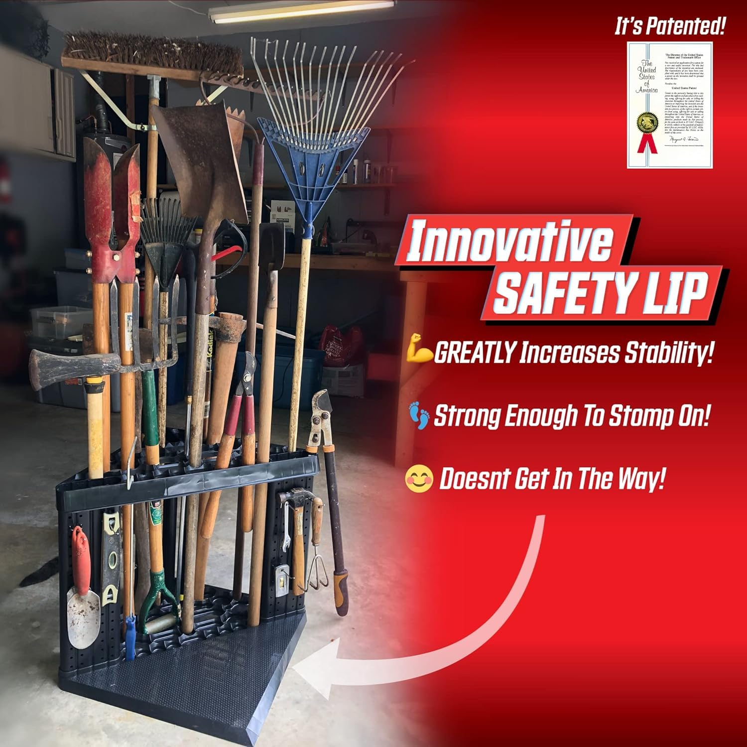 - PACKED WITH FEATURES YOU WON'T SEE ANYWHERE ELSE! -- Other tool racks fall because of their cylindrical flimsy design. We've spent countless hours building a super strong structure to keep the rack stable, PLUS, we include wall screws to keep your tool rack in the corner, not falling over all over your garage or even worse, on your car!
