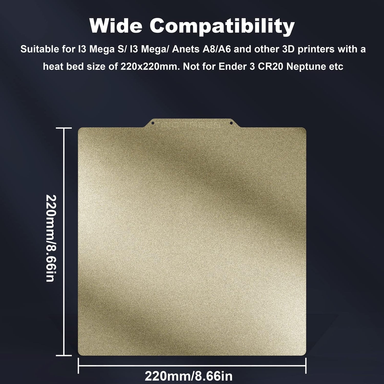 - Wide Application - The size of pei sheet 220x 220 mm, not warped. It is applicable with 3D printers such as MK2/MK2A, Anet A8, Anet A6, Reprap, Mendel, Wanhao Duplicator i3, Monoprice Maker, not suitable for Ender 3, 5 etc. Please confirm your printer platform size before ordering. If your 3D printer with 220x220mm heat bed platform, then this PEI sheet is compatible with your 3D printer.
