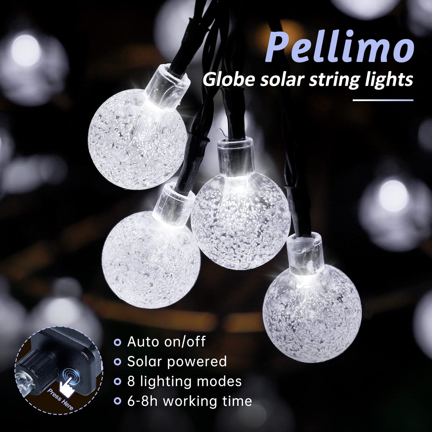 Pellimo 2-Pack 30 LED 20FT Solar String Lights Outdoor, Crystal Globe Lights with 8 Lighting Modes, Waterproof Solar Powered Patio Lights for Garden Yard Porch Wedding Party Decor (White)
