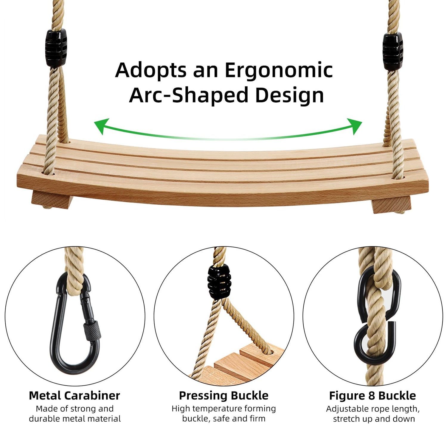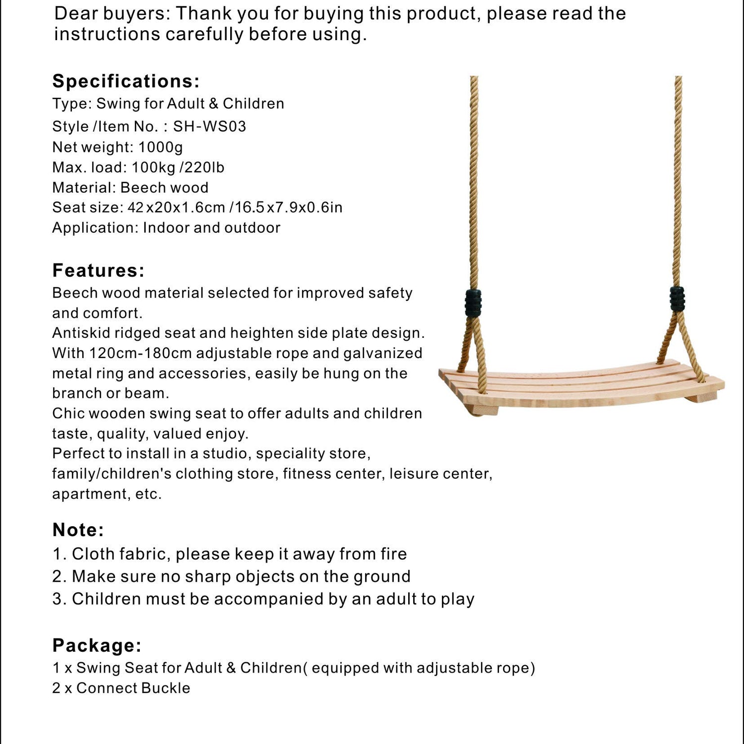 - ๐๐๐จ-๐ ๐ซ๐ข๐๐ง๐๐ฅ๐ฒ๐๐ง๐๐๐๐๐๐๐๐ญ๐๐ซ๐ข๐๐ฅ๐ฌ๐๐ข๐ญ๐ก๐ฌ๐ญ๐๐ง๐๐๐๐ฑ๐๐๐๐ฅ๐๐ฌ - Beech wooden material provides you with security and comfort using experience.The wood tree swing with 180cm adjustable rope galvanized metal ring and accessories,easily be hung on the branch or beam.The sturdy twine can stand up to 220lbs. High quality materials allow this swing to withstand the sunshine and wind even snow while maintaining its luster.
