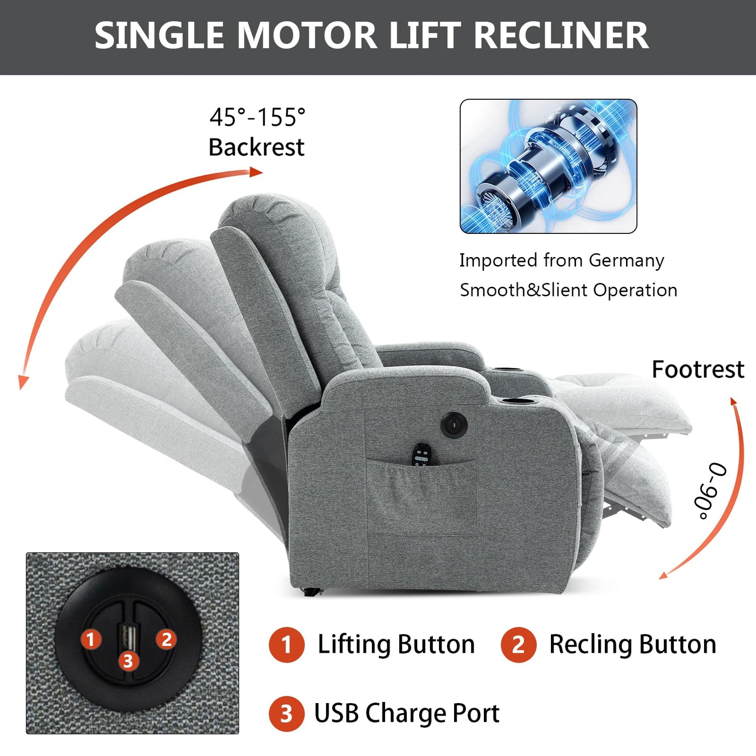 - MANUAL LIFT ASSIST TECHNOLOGY: Experience effortless standing and sitting with our manual lift assist recliner chair. Designed specifically for elderly users and those with mobility challenges, this lift chair provides safe support without straining. The smooth lifting mechanism ensures comfortable transitions, making it ideal for daily use and post-surgery recovery.
