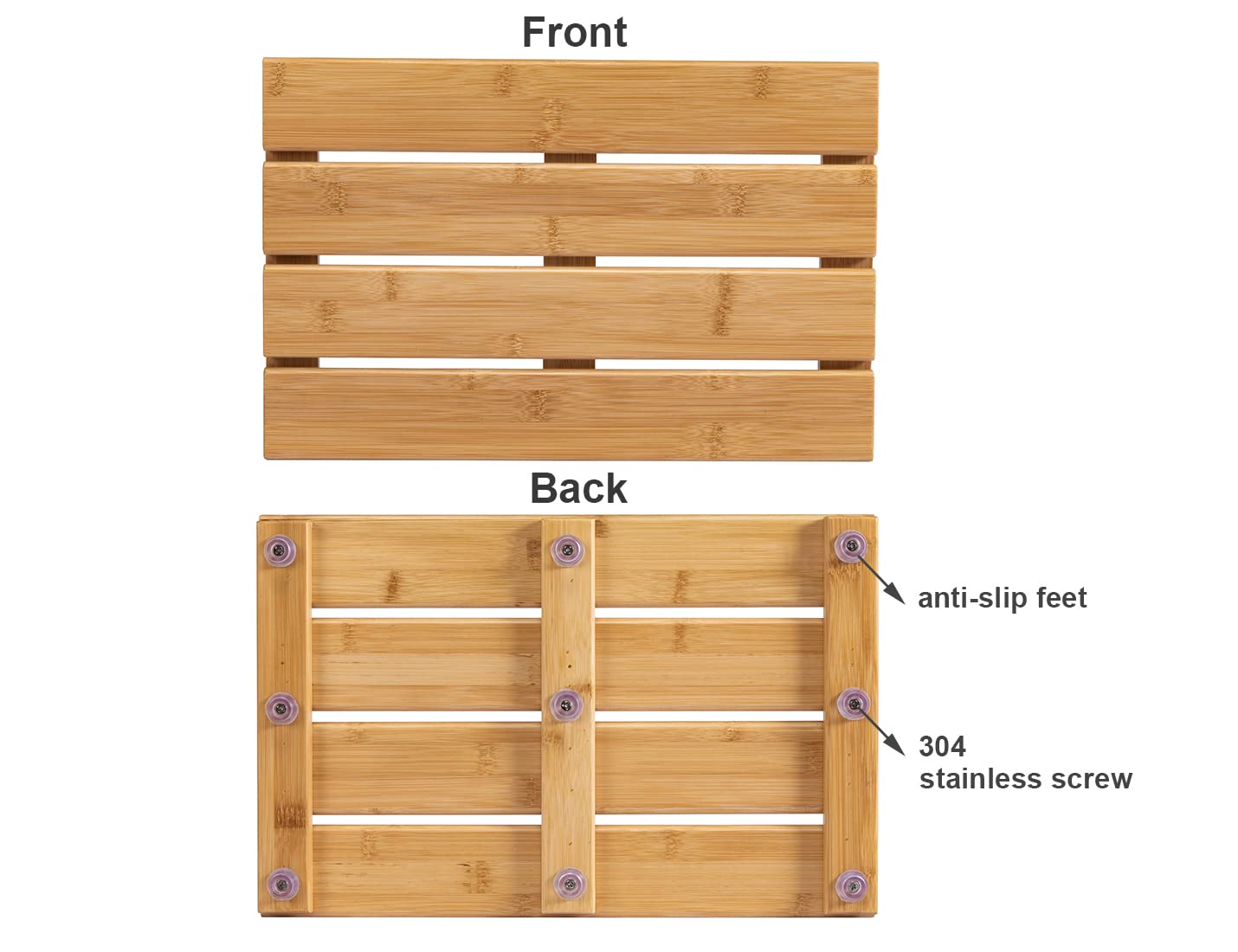 - NON-SLIP DESIGN: Each bamboo bathroom mat comes with stainless steel screws and non-slip rubber pads securely screwed on, prevent sliding and protect floor from scratches.