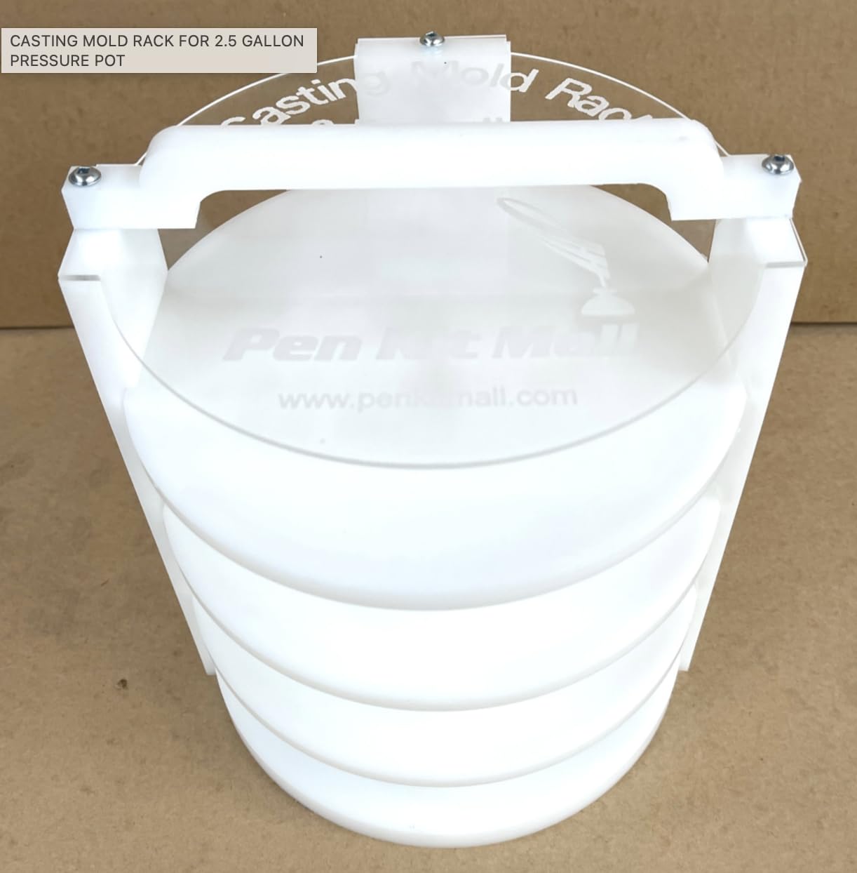 - Pen Kit Mall HDPE 4 Tray Mold Rack for 2.5 Gallon Pressure Pots for Resin Casting Fits Silicone Tube-in Molds, Block Molds, Bottle Stopper Molds and others Heavy Duty Handle for sturdy adjustments.