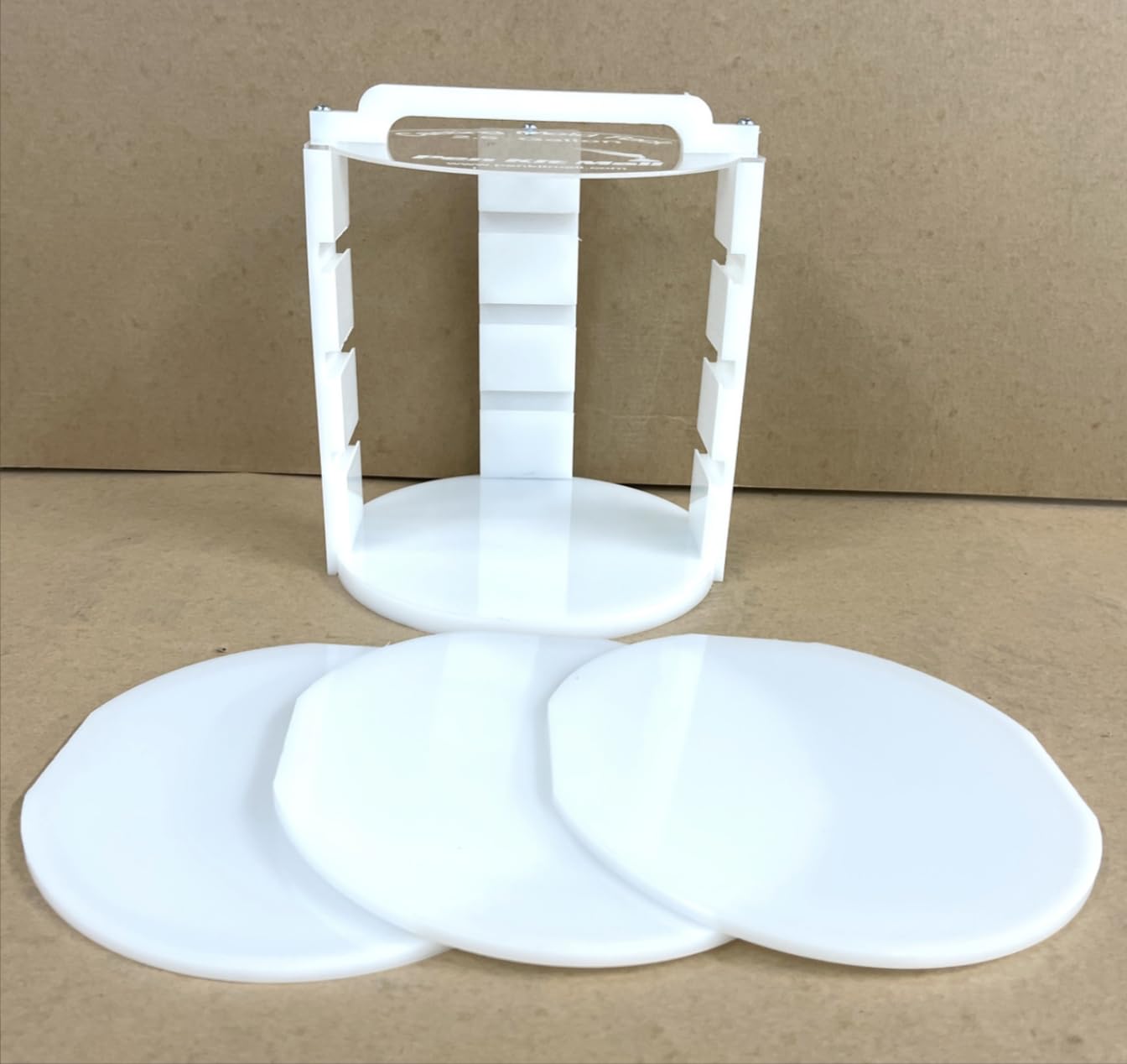 Details: Pen Kit Mall HDPE 4 Tray Mold Rack for 2.5 Gallon Pressure Pots for Resin Casting Fits Silicone Tube-in Molds, Block Molds, Bottle Stopper Molds and others Heavy Duty Handle for sturdy adjustments. Removable trays to accommodate larger molds. Fits 2.5 gallon Harbor Freight Pressure pots. Great for resins such as alumilite etc. that require pressure to cast. Pen Blanks bottle stoppers etc. Top acrylic for air deflection HDPE RACK ONLY