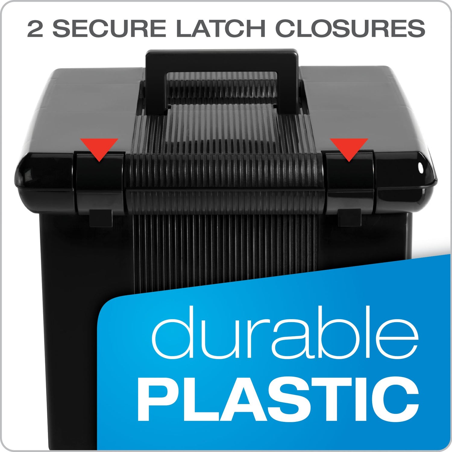 - Built-in handle and double latch closure keeps documents secure; portable file box travels neatly between rooms or to and from the classroom or workplace