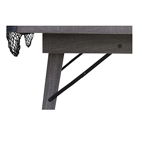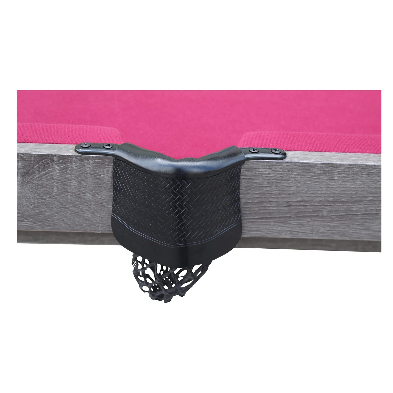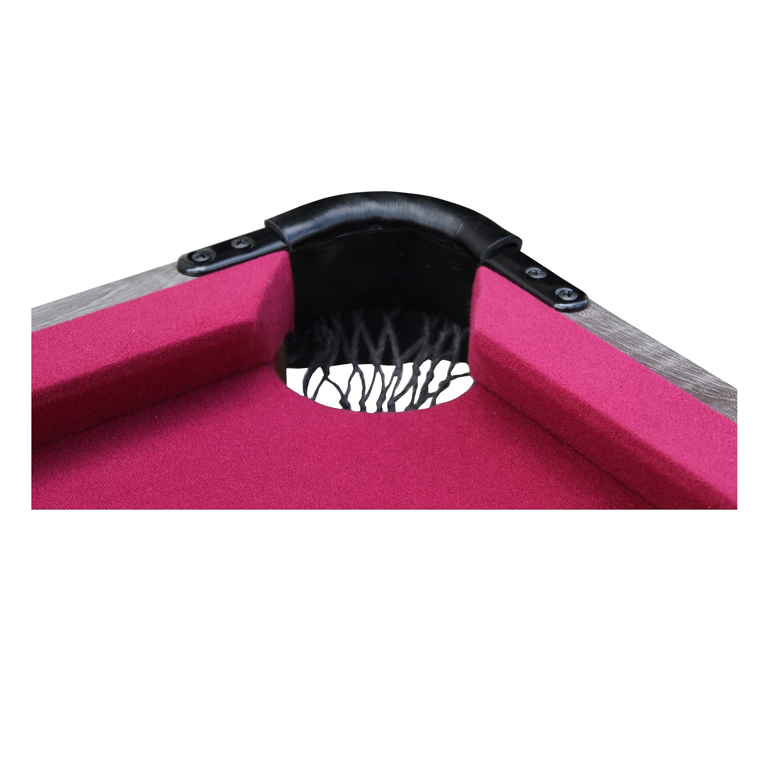 - HIGH-QUALITY CONSTRUCTION - This table features 2.2-in wide top rails wrapped in a durable, farmhouse-inspired melamine, fast-action cushions, and a playfield covered in burgundy blended polyester felt.
