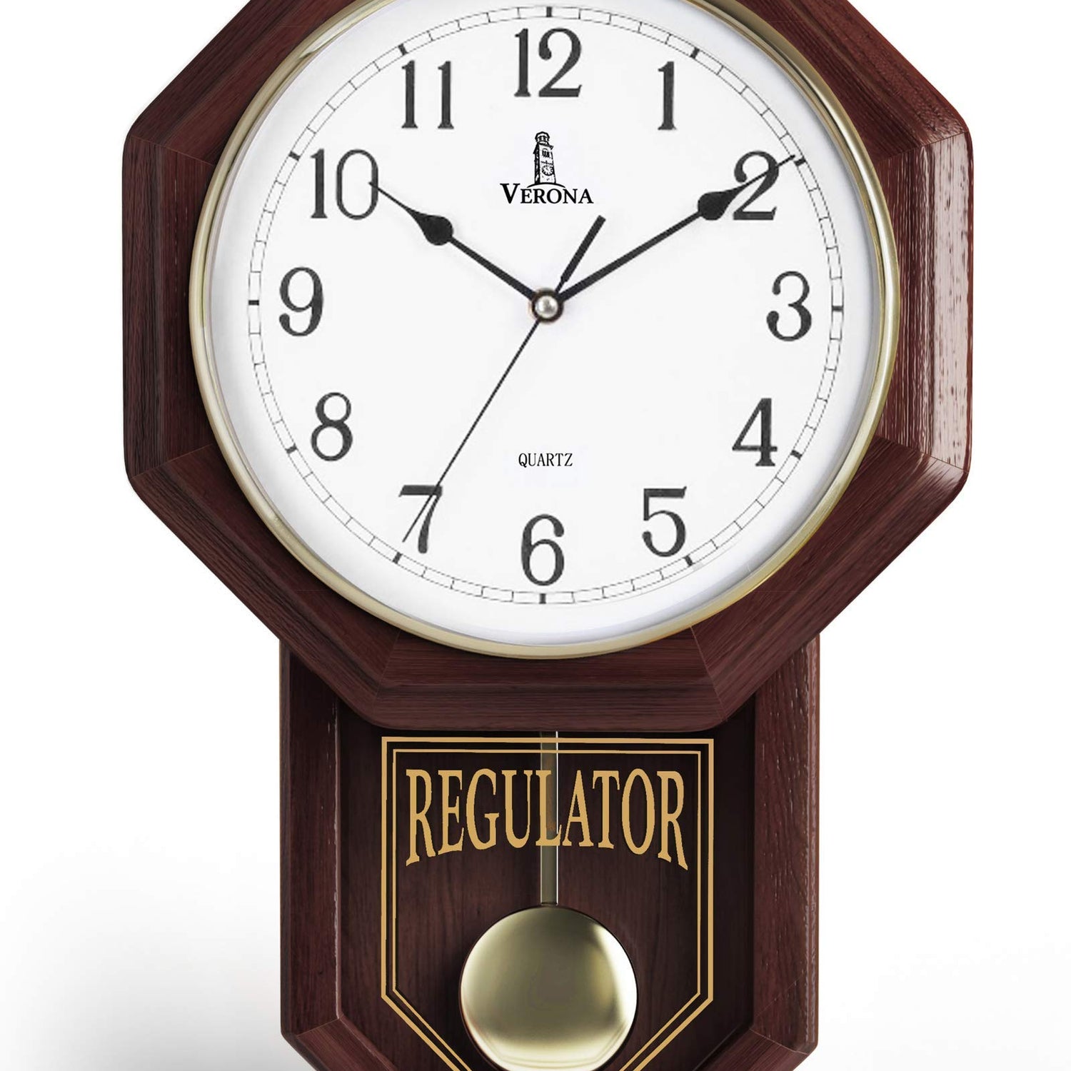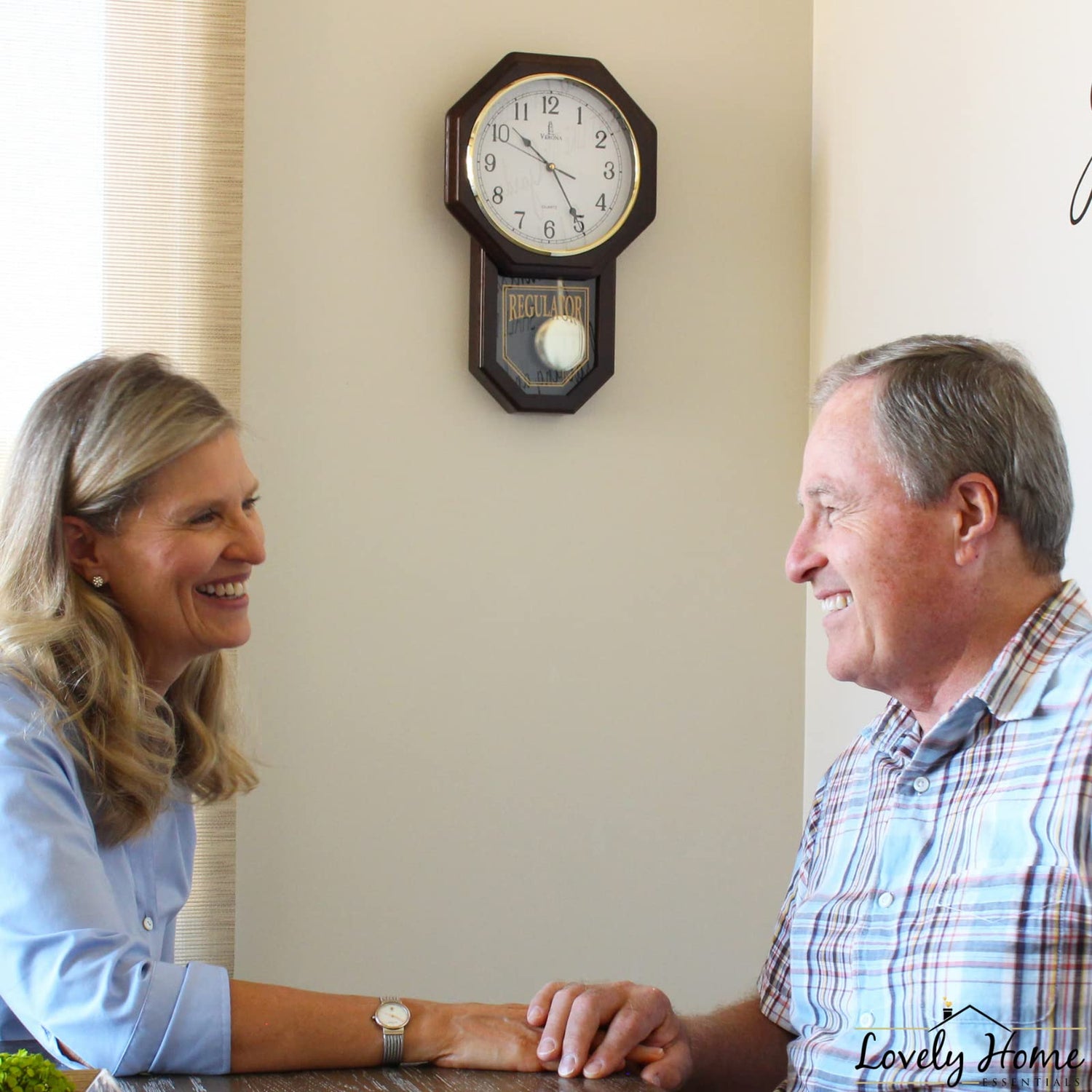 - BE THE ENVY OF YOUR DINNER GUESTS - Lovely Home Essentials wooden pendulum wall clock features an elegant, antique-looking design, complete with a beautiful finish and exquisite detailing. Our schoolhouse clock is constructed to be the perfect size for any room, making our regulator clock design a magnificent addition to the room décor of any living room, kitchen or office. We are confident that you will love the timeless style, quality and value of this beautiful timepiece.