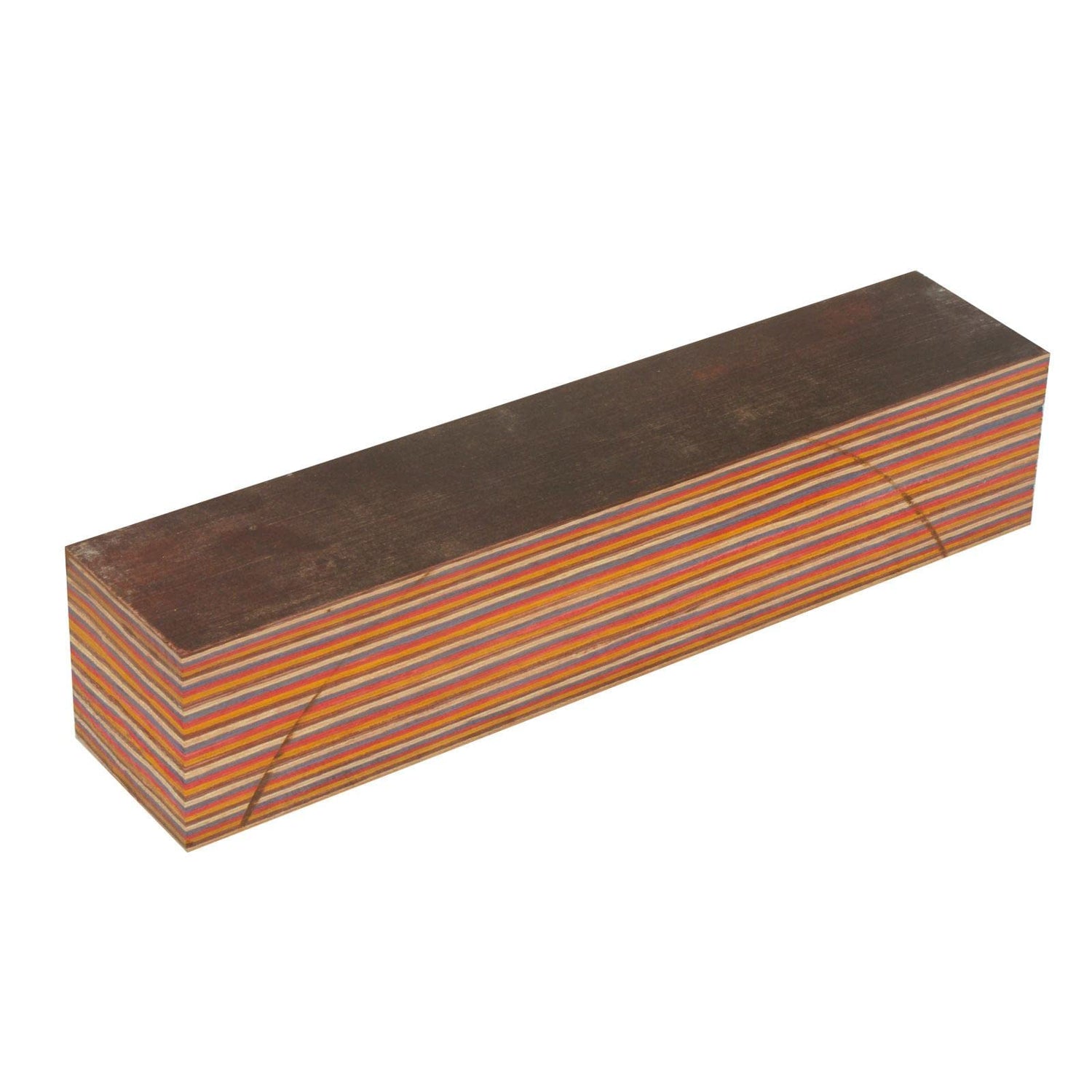 - Each spindle blank is made from laminated multi-layered dyed hardwood veneers