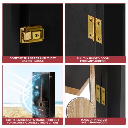 - Guaranteed to Withstand Deterioration: This extra-large wooden guitar case has durable hardwood frame, glossy black finish, and heavy-duty clear acrylic door. Ideal for electric and acoustic guitars, offering ultra-clear viewing with UV protection.