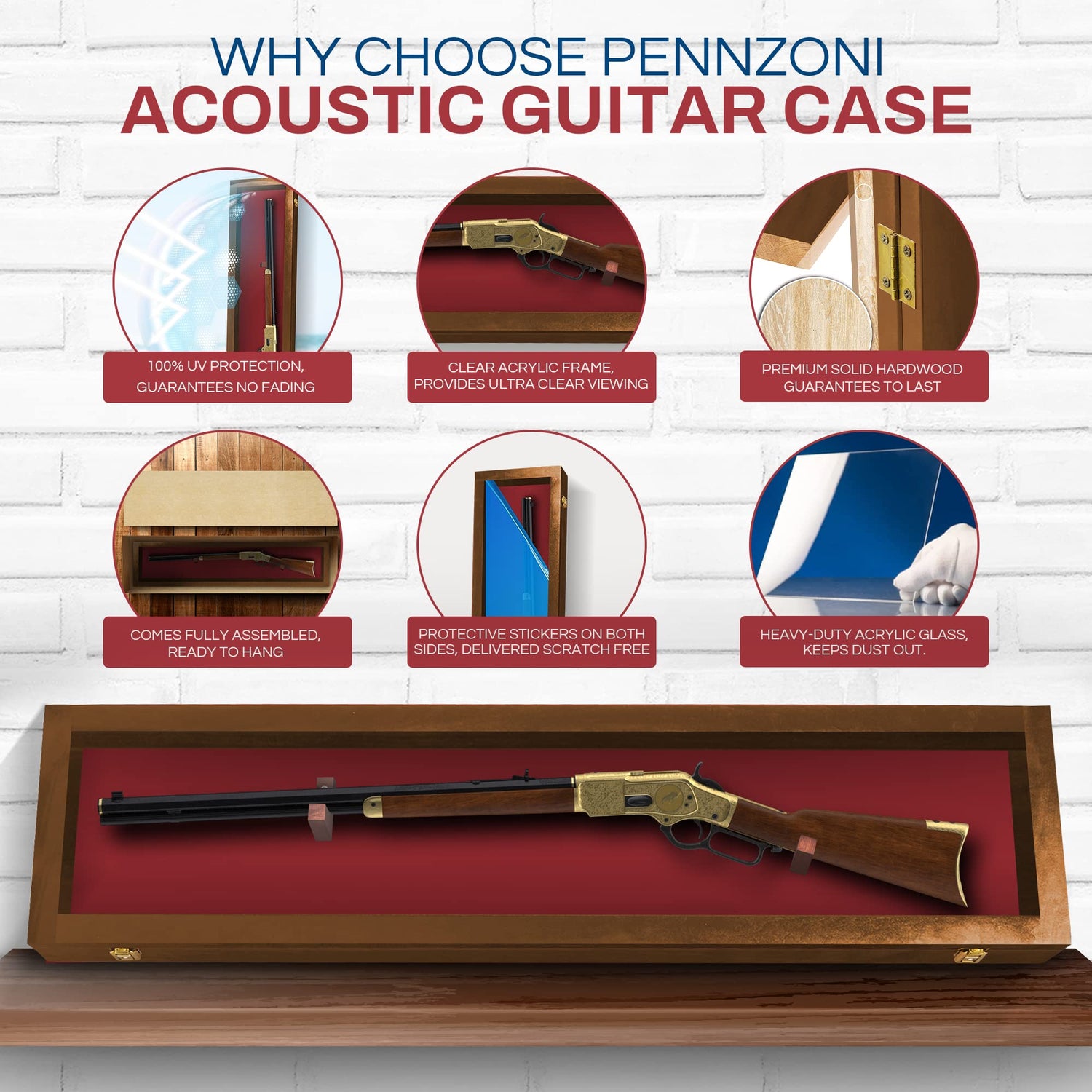 PENNZONI Gun Display Case - Lockable Rifle Display Case - Gun Cabinets for Rifles & Shotguns - Sword Wall Mount, Gun Wall Mount Display Case w/ Acrylic Door | Walnut, Red Felt