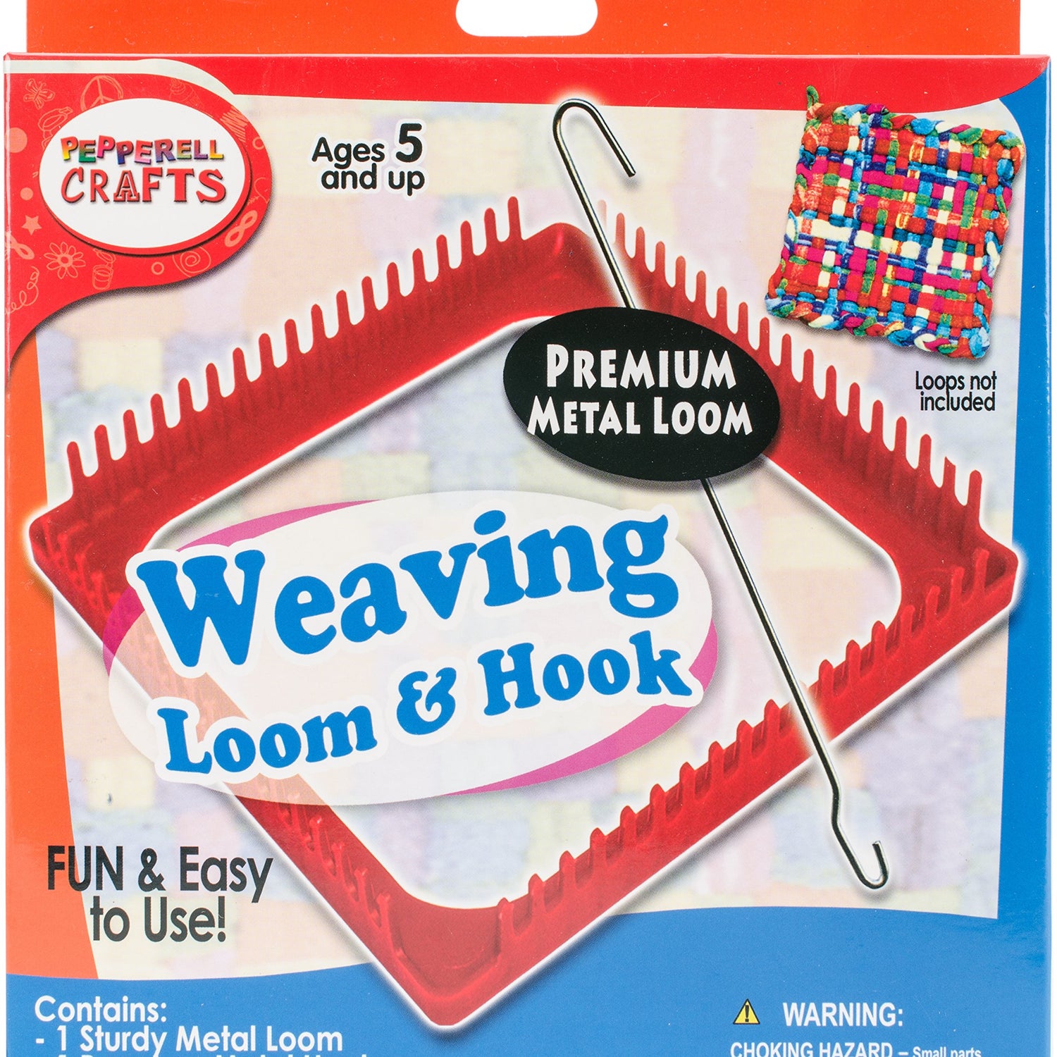Details: The Metal Loop Weaving Loom (square measuring 7-1/4 inches or 19 centimeters) is a fun, practical, and easy way to start the art of knitting. This Loop & Loom design is best suited for making pot holders, mats, and countless other craft or handmade jewelry items. Quality metal loom is conveniently washable and comes with metal hook/noodle (at 9-1/2 inches or 24 centimeters) and easy instructions for creating your very own potholder. Braiding Weaving Craft Loops sold separately; see Item 2002150. Safe for ages 5 and up.