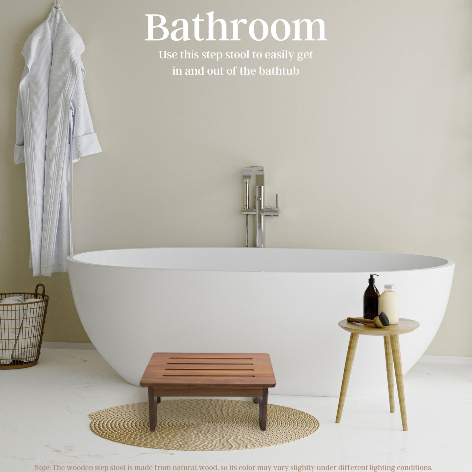 • Compact and Efficient Size: The one step stool, made from durable acacia wood, features dimensions of 16L x 12.5W x 3.5H inches, offering a compact and practical design suitable for indoor and outdoor use. Its compact size makes it easy to maneuver in tight spaces such as kitchen, bedroom, and bathroom, providing convenient access to high beds, shelves, cabinets, and more.