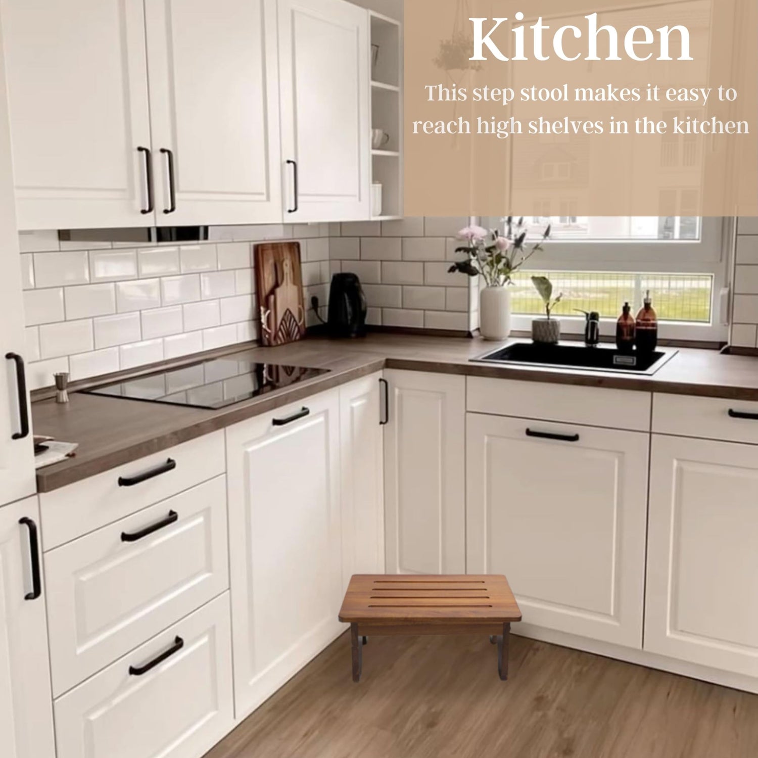 • Acacia Wood: Crafted from high-quality acacia wood, this step stool ensures durability and strength, capable of supporting up to 300 lbs effortlessly. Its sturdy construction makes it ideal for use by adults, kids and the elderly, providing reliable support and assistance for various tasks around the home.