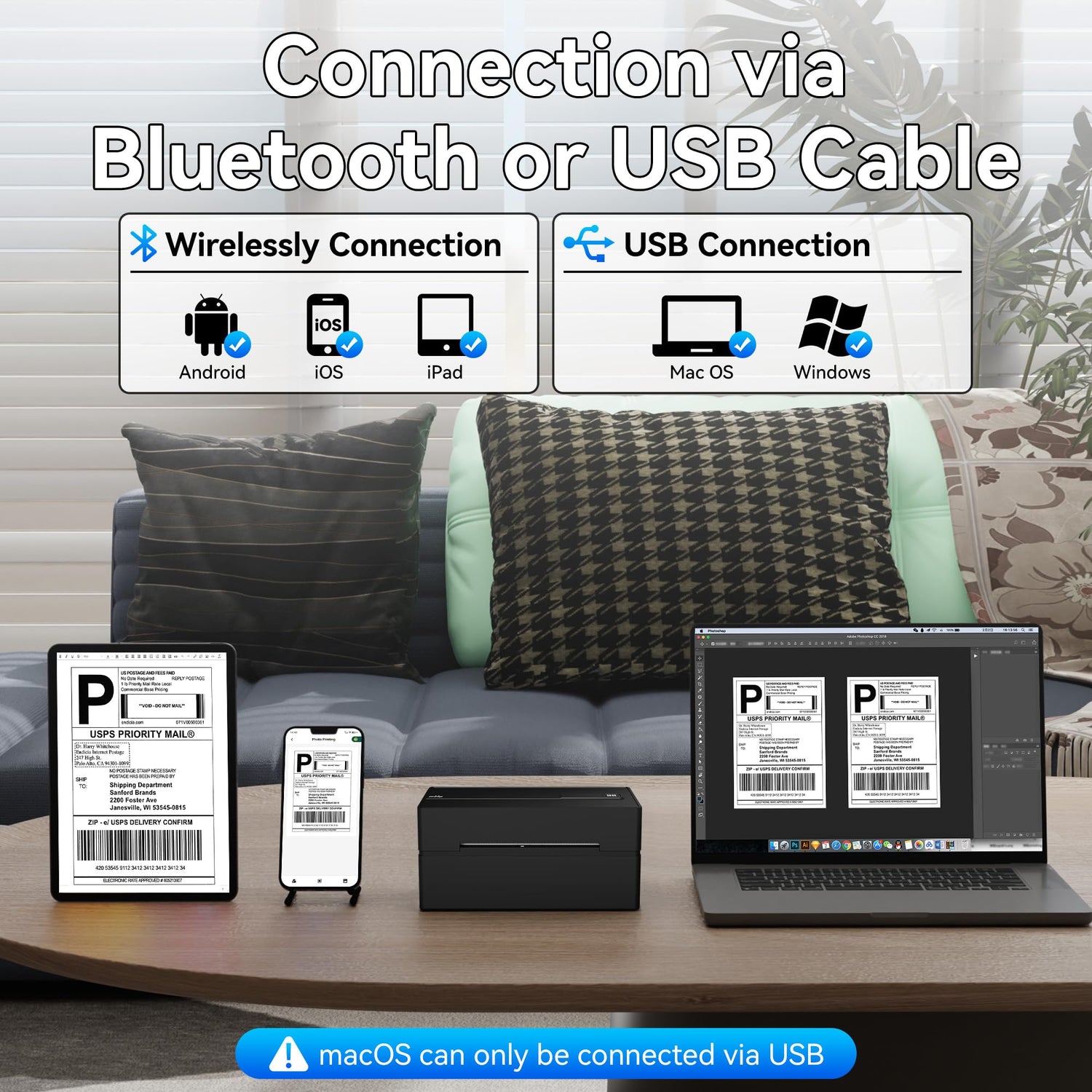 - ๐๐น๐๐ฒ๐๐ผ๐ผ๐๐ต ๐ฃ๐ฟ๐ถ๐ป๐๐ถ๐ป๐ด--Support phone and pad Bluetooth connection for printing, get โPeriPageโ APP from Google Play or Apple Store, and achieve simple and efficient printing of shipping labels or barcodes with APP.