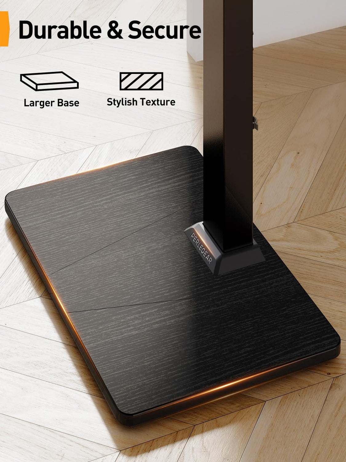 - 【Stylish & Durable Base】 Our TV stand’s large base measures 21.65″ x 15.75″ to provide exceptional stability for your equipment. The floor TV stand base is made of compressed wood and finished with a modern wood grain texture to complement the décor of any living space.Moreover, our TV mount stand fits neatly behind your TV console for saving space.