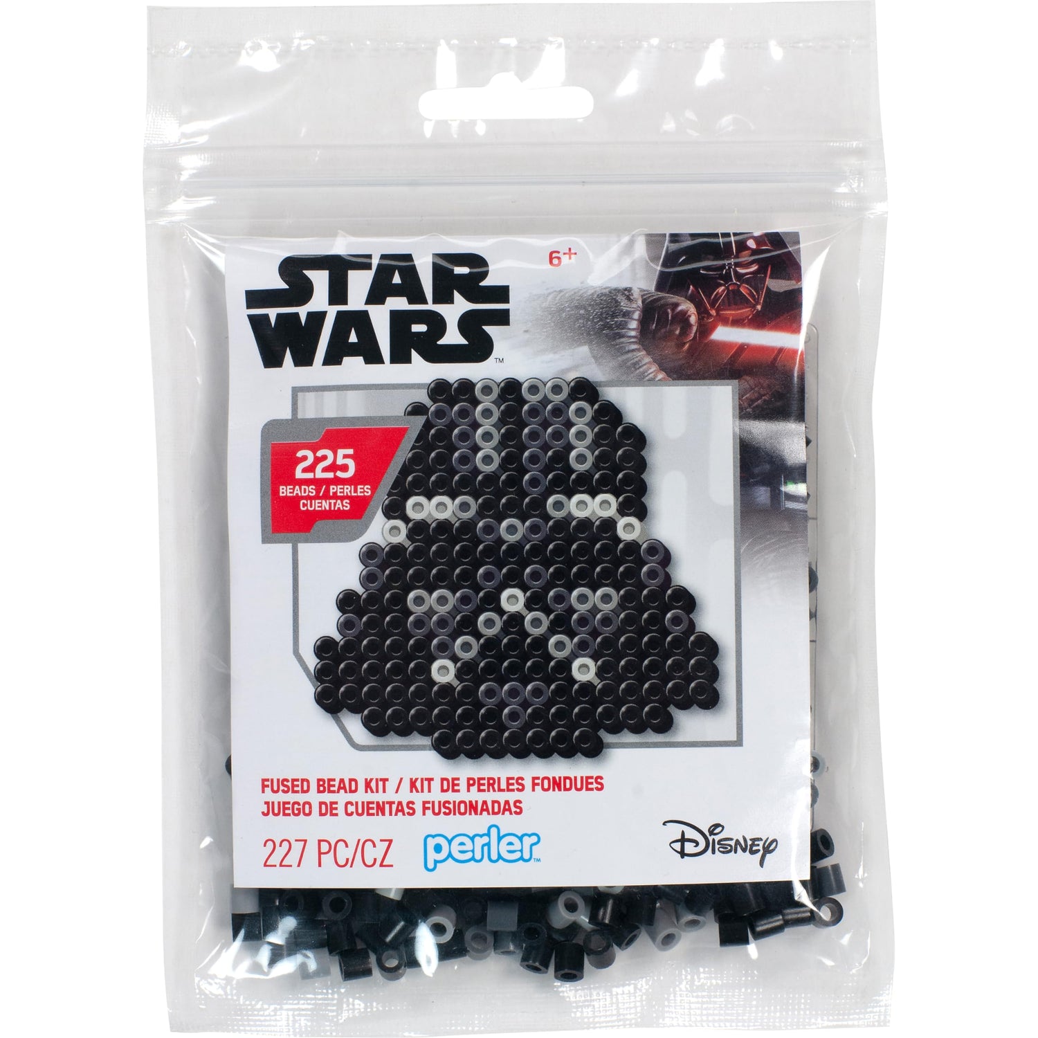 Details: This Perler bead Darth Vader activity kit is a perfect introduction to fuse beads crafts for kids and adults alike! The classic Star Wars fuse bead pattern is perfect for fans of the films, and the small design makes this set a great little gift to include in an Easter basket or Christmas stocking. Package includes the design pattern and easy-to-follow instructions, making this Star Wars Perler bead set perfect beginners. Plus, Perler bead sets are fun and engaging kid's craft activity that encourage and promote fine motor skills, color recognition, and imaginative play! Perler bead trial kit contains 225 beads, 1 pegboard (small square), and ironing paper. Don't forget that the pegboard and ironing paper are reusable with other Perler kits and projects! © and ™Lucasfilm Ltd. Kit is for ages 6 and up, and ironing must be done by an adult only.