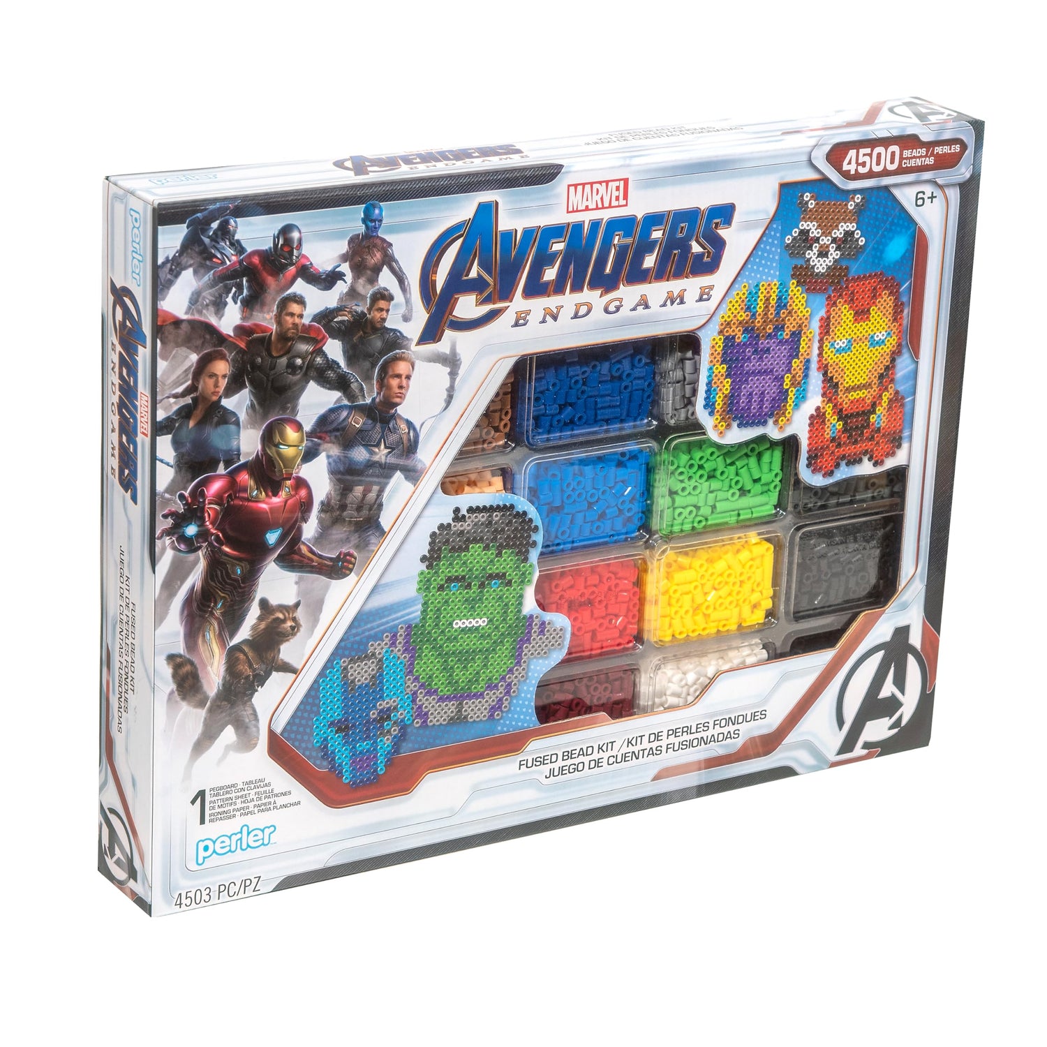 Details: Perfect for gifts, parties, and playdates, this Perler FUSE bead kit includes everything needed to assemble the Avengers and fight Thanos! A great craft for kids as well as fans of anything Marvel, this kit includes instructions to make the Hulk, iron Man, rocket Raccoon, Thanos, and more! Includes (4000) Perler FUSE beads, (1) pegboard, (1) ironing paper, and (1) pattern sheet with instructions. Comes with 10 Perler Bead patterns. For ages 6+. adult help and supervision required when ironing.