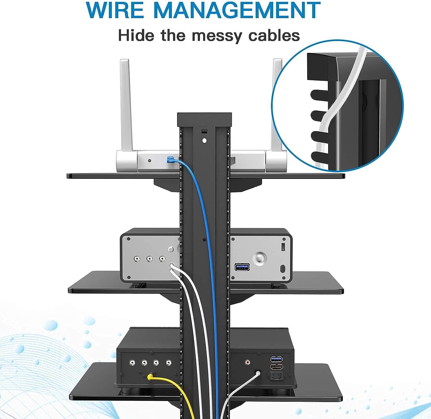 - 【DURABILITY】Our wall mounted shelf is built with one large strengthened tempered glass shelf (13.78 x 11 x 14.76 inch shelf and 4mm thick), designed for DVD/Blu-Ray Players, Satellite/Cable Boxes, Games Consoles, Hi-Fi and Surround Sound Speakers.