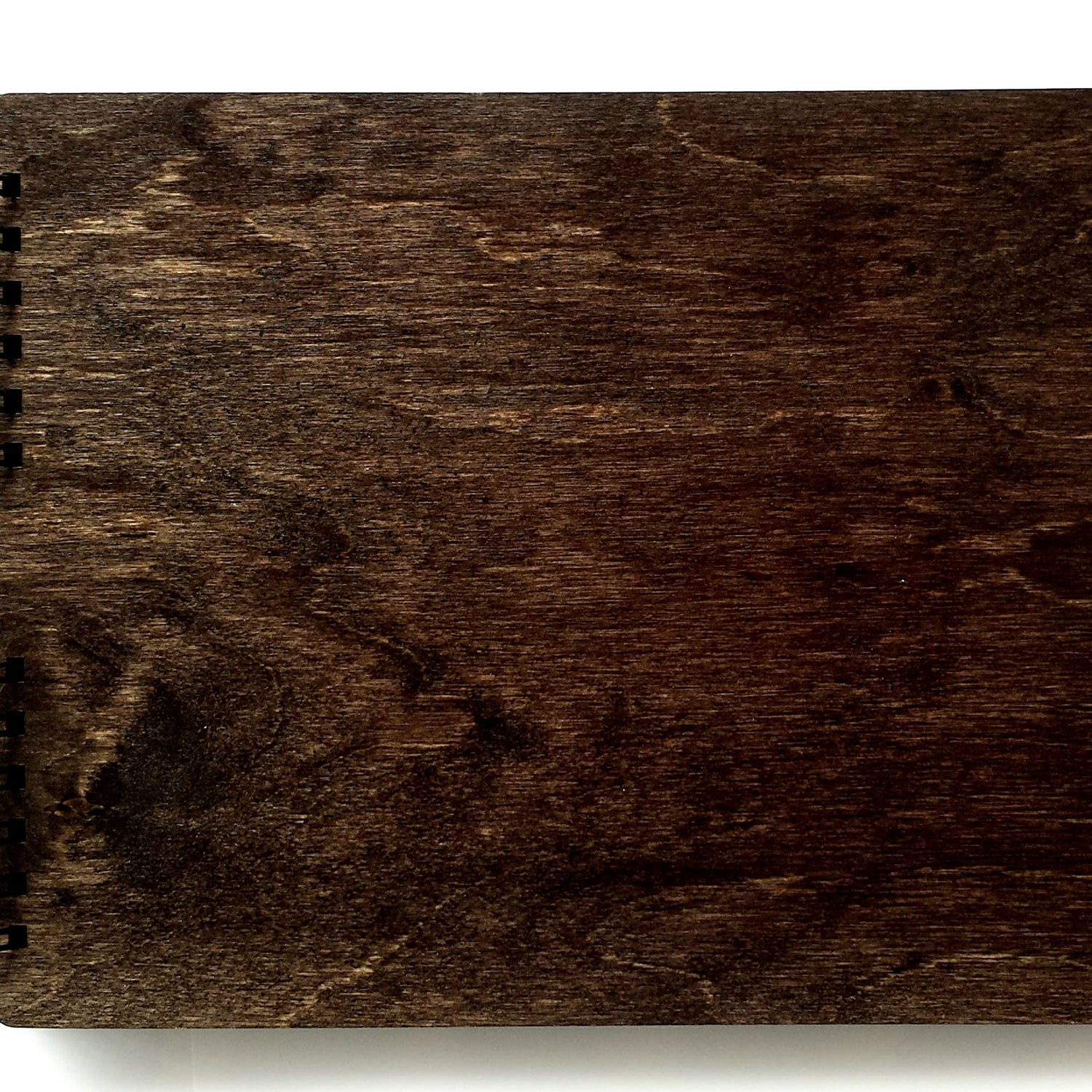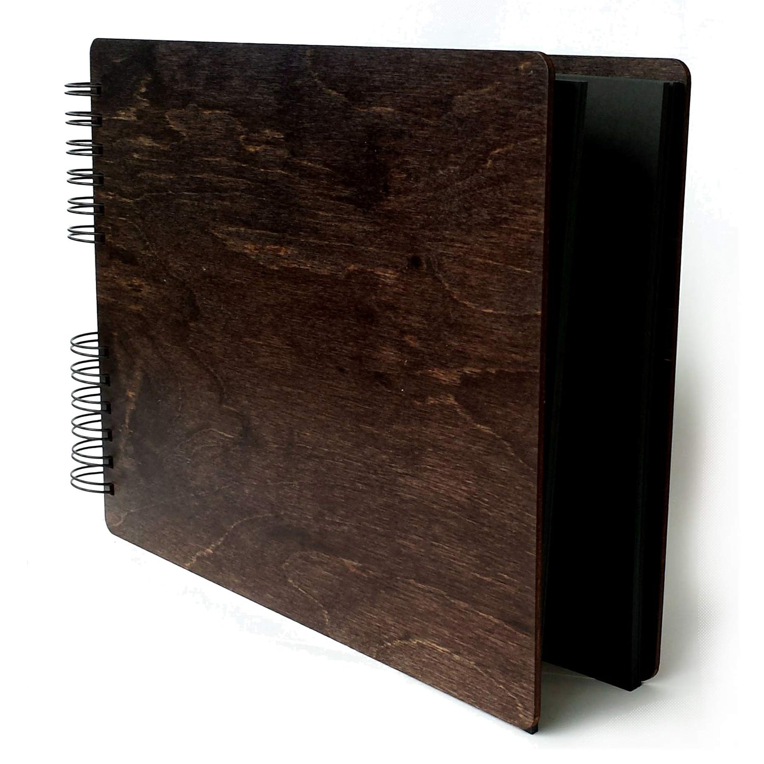 Personalize It Wooden Rustic Book 11" x 8.5" : Made in USA (All Black Cardstock Inside Pages, Front Cover Burnt Cocoa Wood) DIY Scrapbook Album Guestbook Photo Guest Book Sketch Pad