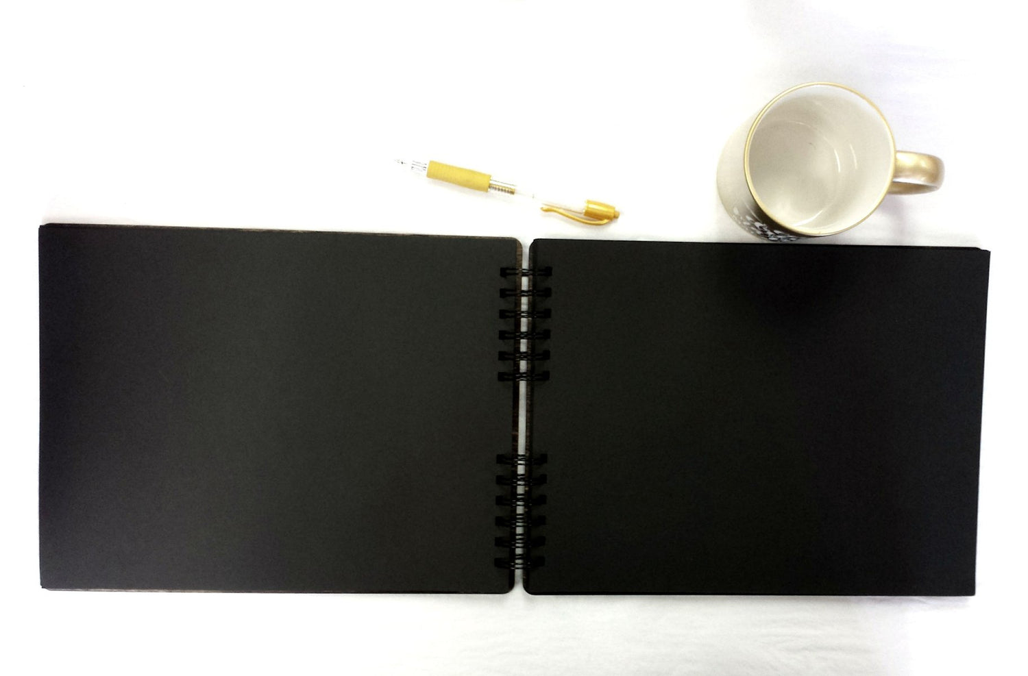 - SIZE: 11.25."L x 8.75"W x 0.75"H. 40 sheets (total 80 pages) to hold over 160 photos. Large photo album / scrapbook / guestbook / sketch pad / photo journal with cardstock black pages.