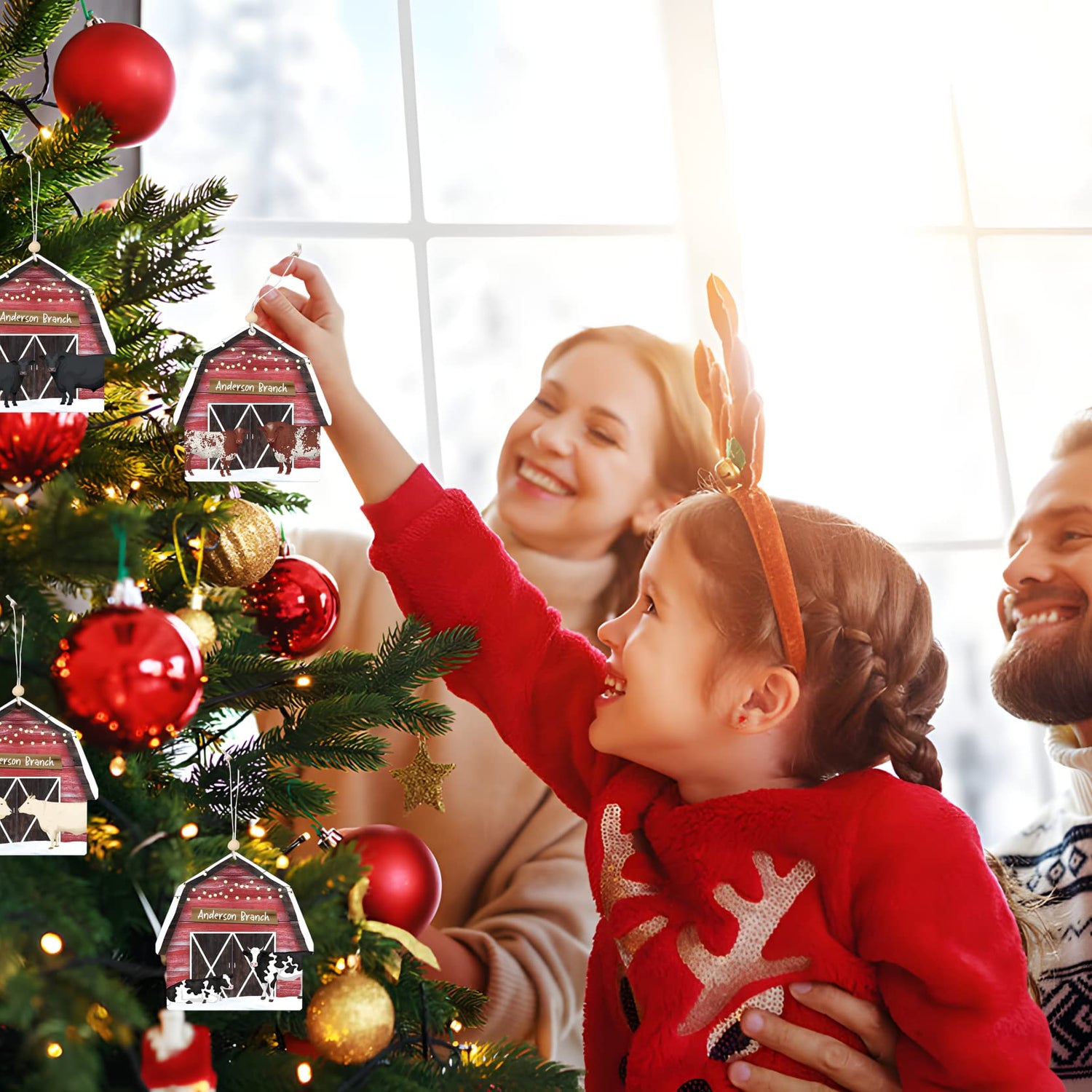 Personalized Barn Christmas Ornaments 2022 - Wood Cow Barn Ornaments for Christmas Tree - Farmhouse Ornaments, Mooey Christmas Farmer Farm Life Animal Lover Gift for Family Xmas Decorations