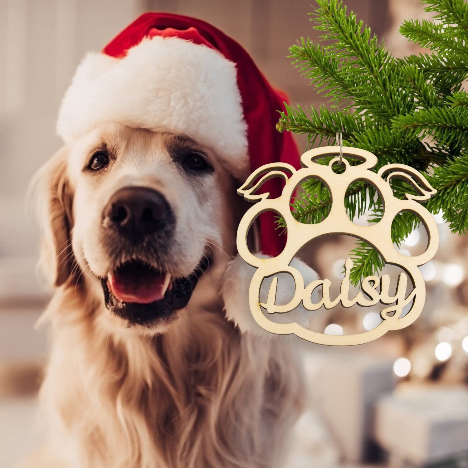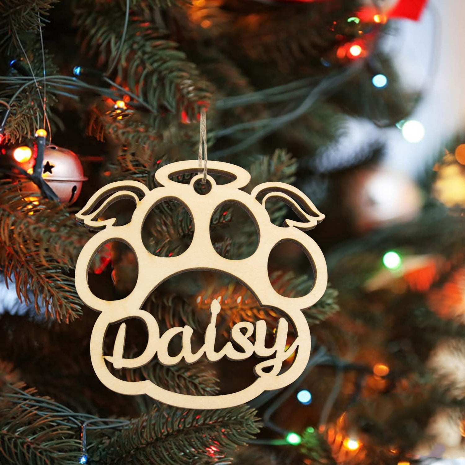 Personalized Cat Paw Christmas Ornaments with Angel Wings, Custom Pet Name Wooden Ornaments for Christmas Tree Decorations Gifts