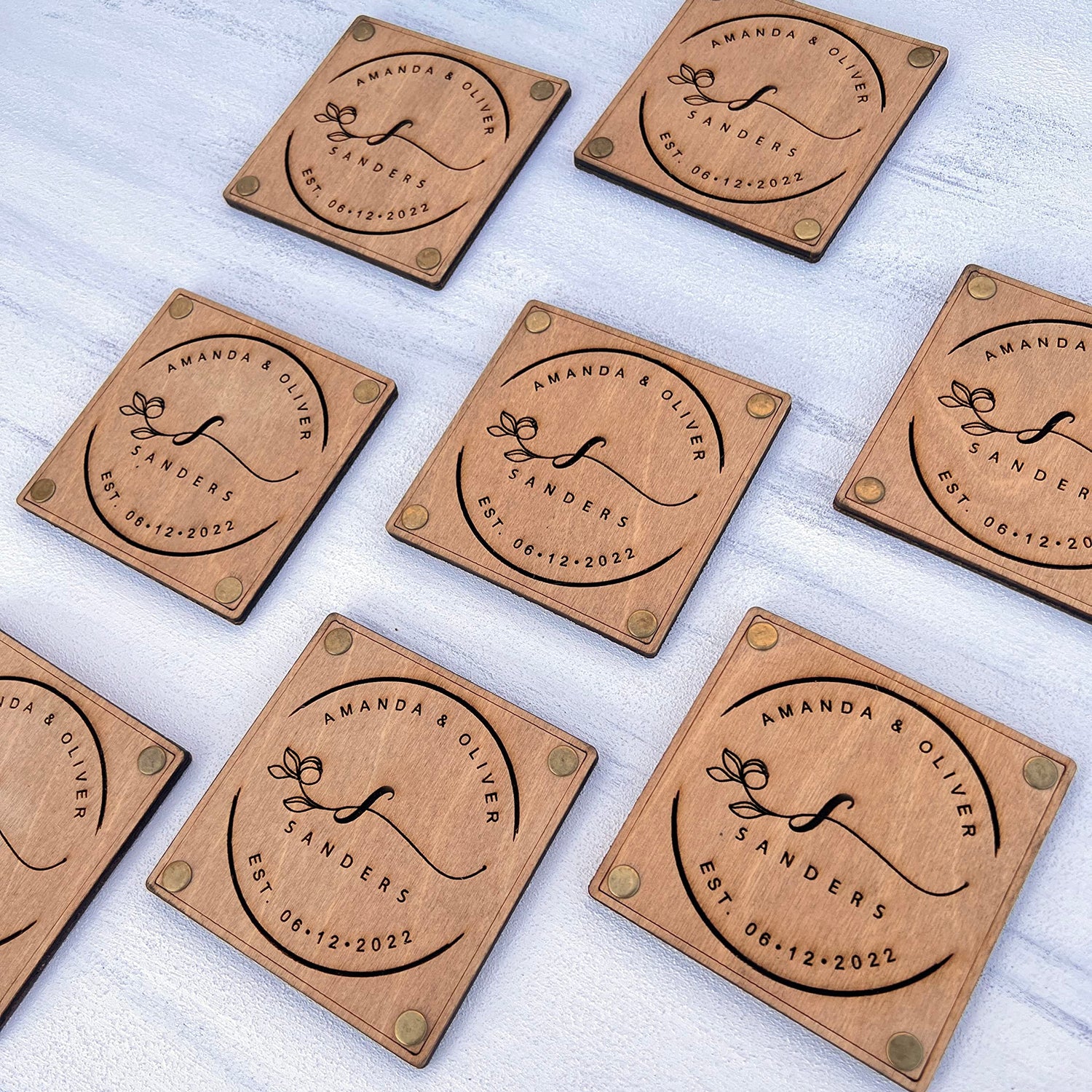 Personalized Coaster Wedding Gifts for Couple Unique Birch Wooden Coasters, Anniversary Gifts, Personalized Wedding Gift, Housewarming Gift, Set of 4, 6, 8, 12, 16