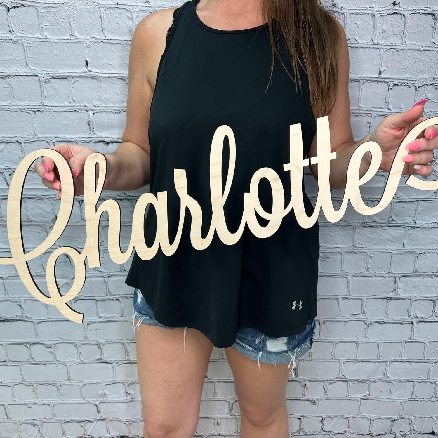 - CUSTOMIZABLE - You choose the SIZE, the photo is only an example. The wood sign will come in the size that you choose and NOT the size in the photo unless you choose that size. Size is the total width of the name. All signs come unpainted with the option to add paint at checkout.