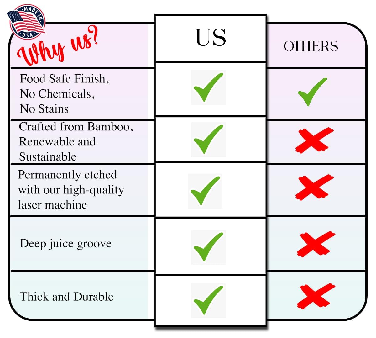 - Natural Bamboo: These custom natural bamboo cutting boards can be used as cutting boards, cheese & charcuterie boards, serving boards or simply for display as keepsakes. Smooth bamboo wood wouldn’t dull your knife to ensure easy cutting. The polished and waxed surface to avoid scratches or marks on board. Enjoy your kitchen time!