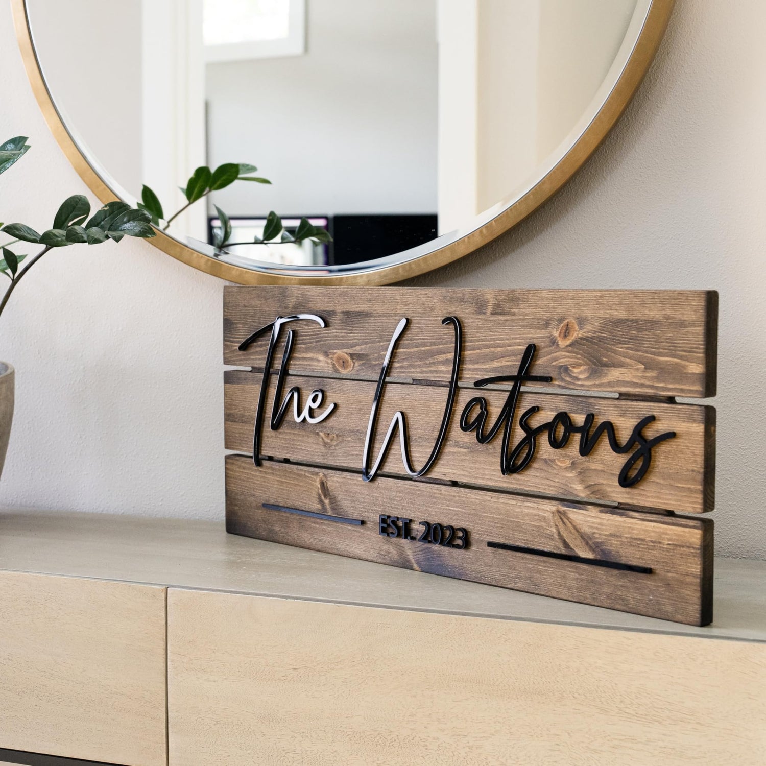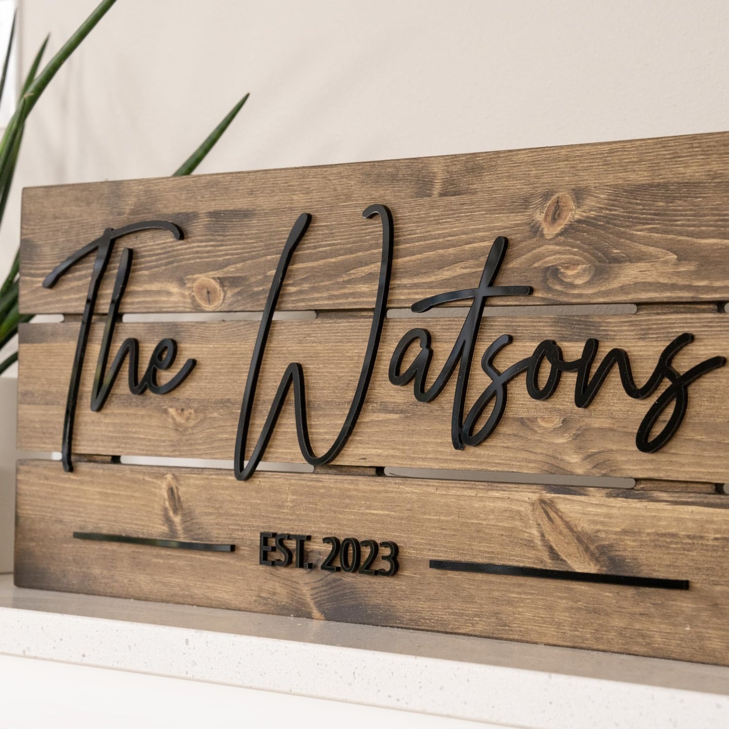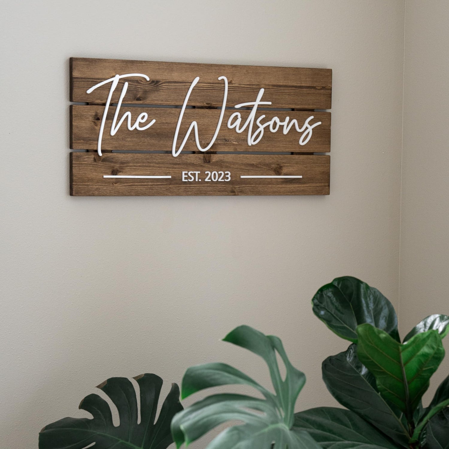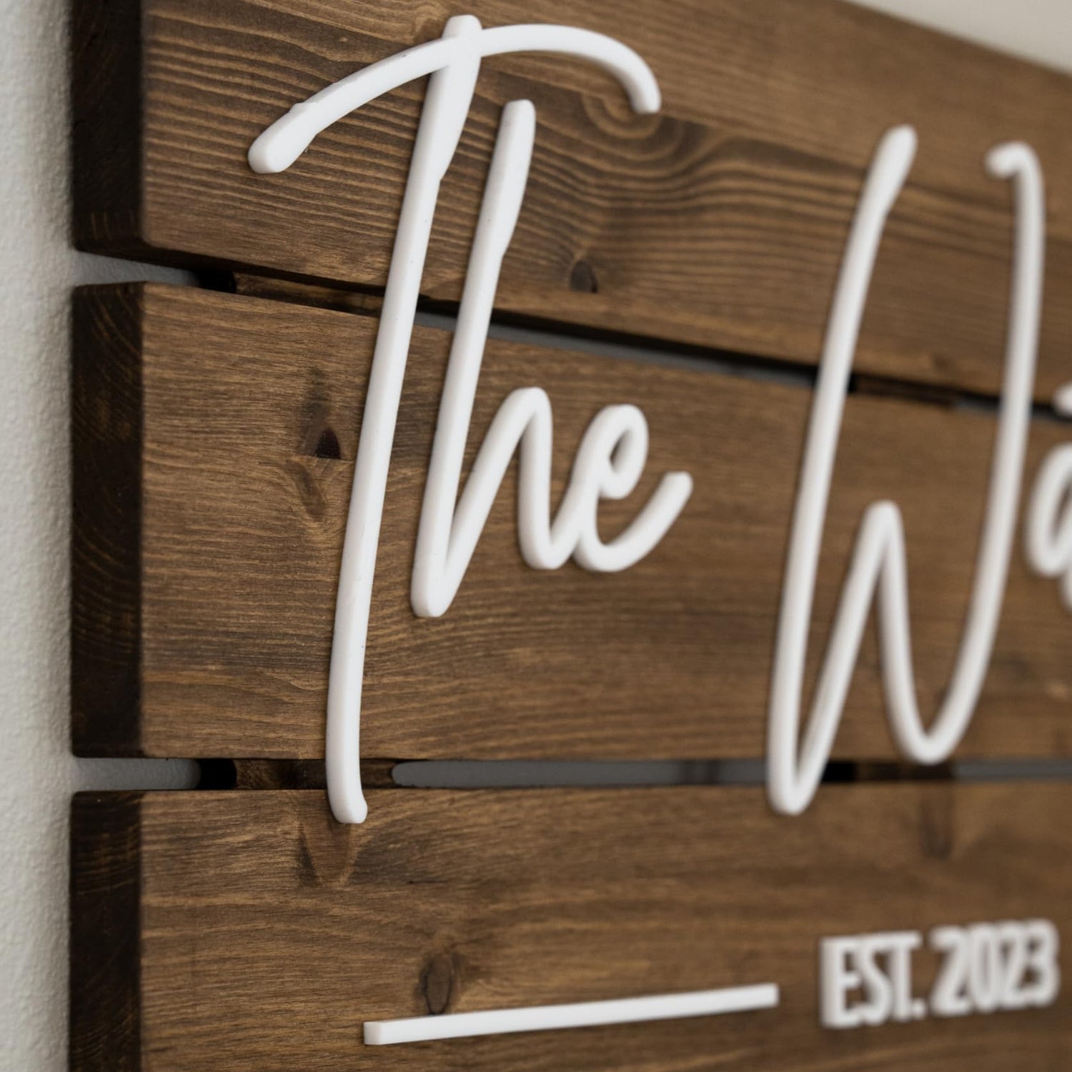 Details: Introducing our collection of exquisite wooden signs crafted from all-natural wood, resulting in a distinctive texture that ensures each piece is truly one-of-a-kind. This listing is for the one personalized sign. No other decor is included. *24x7 sign can only be personalized with name (No Date)