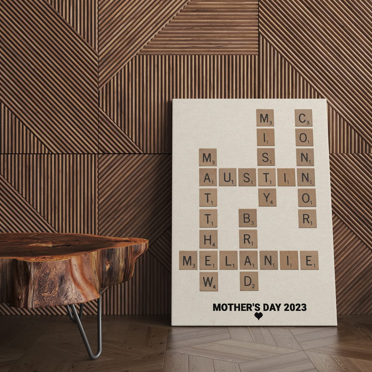 Details: Crossword scrabble canvas is personalized with the names of your family or friends. Made from high-quality, durable materials (canvas, crossword tile letters and screws), it's sure to last for a long time. The design looks great on any wall or shelf, and can easily be updated or changed in the future if needed.A unique and heartwarming gift for your loved ones.Fathers and grandfathers on father’s day, and there neither birthdays nor a Christmas gift that they would cherish it forever.