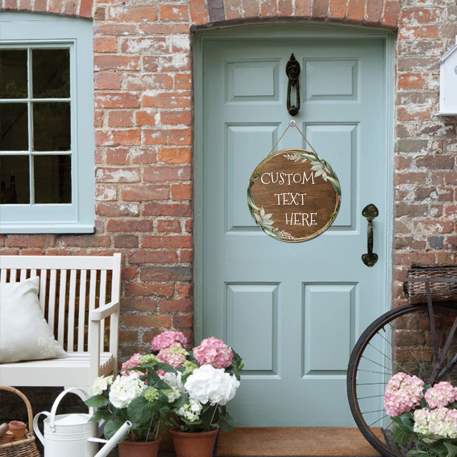 Personalized Garden Signs Custom Round Name Wood Sign for Rustic Looking Farmhouse Backyard Door Hanger Wall Décor Gift