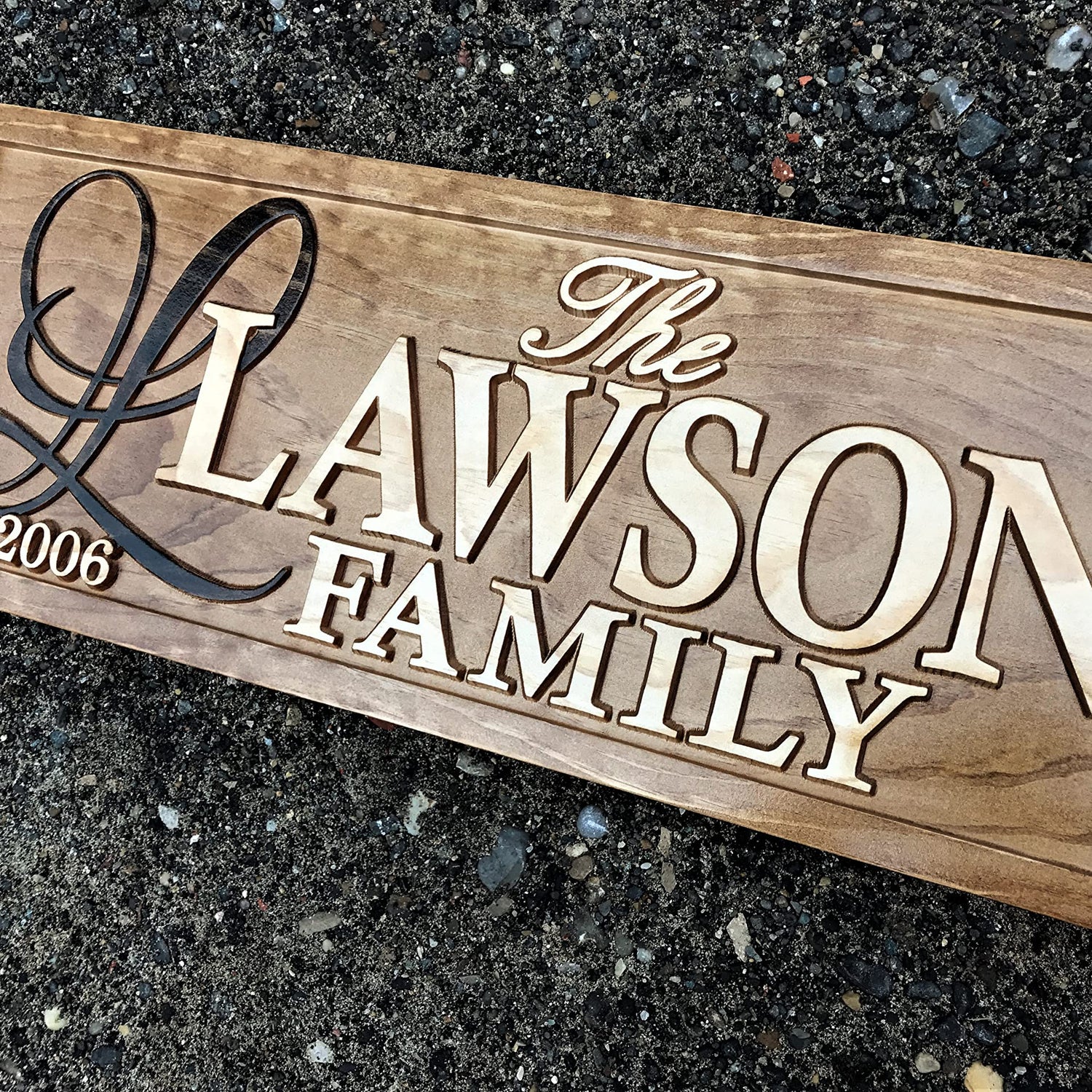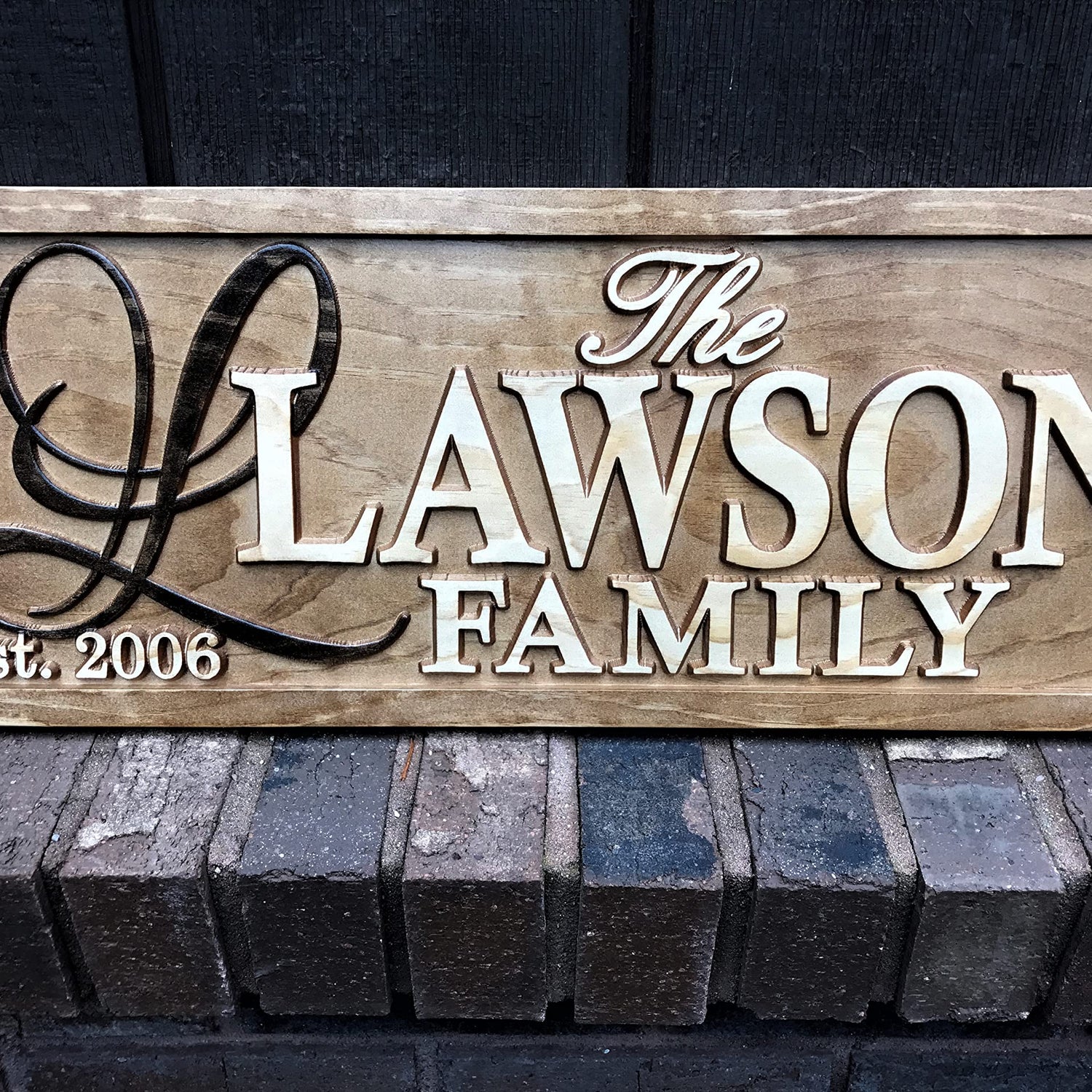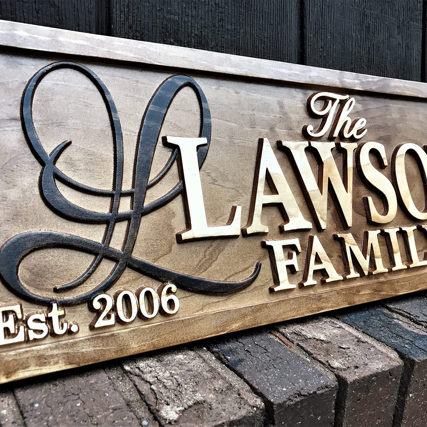Details: You're looking at a personalized wood sign! The sign is made using a two tone stain finish on 3/4" Solid Pine that's finished with a sealer. Each sign includes a sawtooth hanger on the back for quick and easy hanging. Notice the 3D lettering and images that pop right out of the sign. This unique and beautifully crafted sign is truly one of a kind. Such a wonderful gift for an anniversary or a newly married couple. Every sign is handmade out of premium quality pine. We finish our signs with an indoor/outdoor sealer but do not recommend placing outdoors in the direct elements. Provide partial protection from these elements if placed outside.