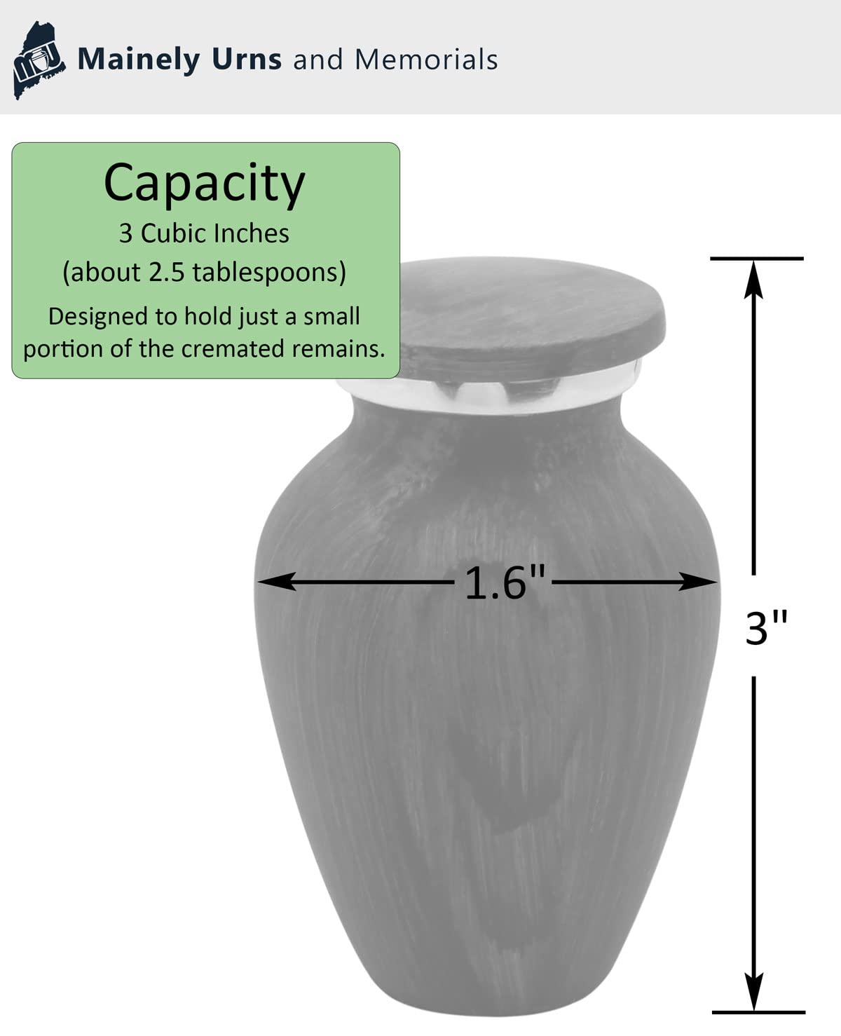 - CAPACITY: 3 cubic inches (about 2.5 tablespoons) of cremains