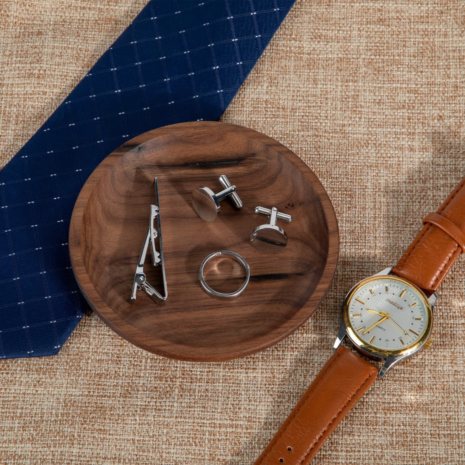 - The wooden tray is versatile and can be used for various occasions. It serves as a perfect wedding ring tray and also functions as a jewelry tray to store your precious accessories such as keys, rings, earrings, and bracelets for everyday use. Additionally, it can be placed in any room including the bedroom, bathroom, or kitchen.