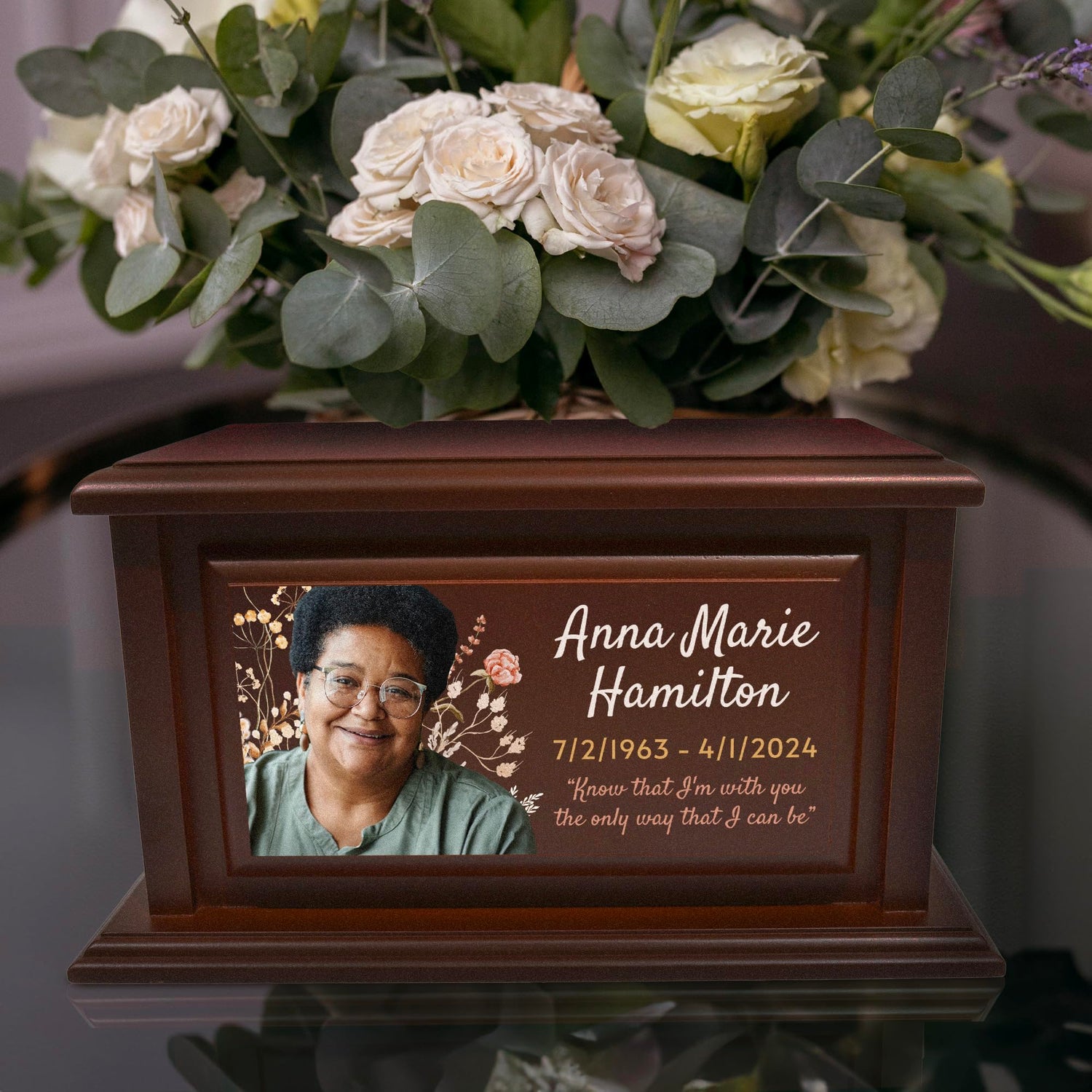 Personalized Solid Wood Human Urns for Ashes 250lbs, Custom Urn Box for Human Ashes, Large Burial and Cremation Urns for Ashes, Cherry Wood Color (Design 6)