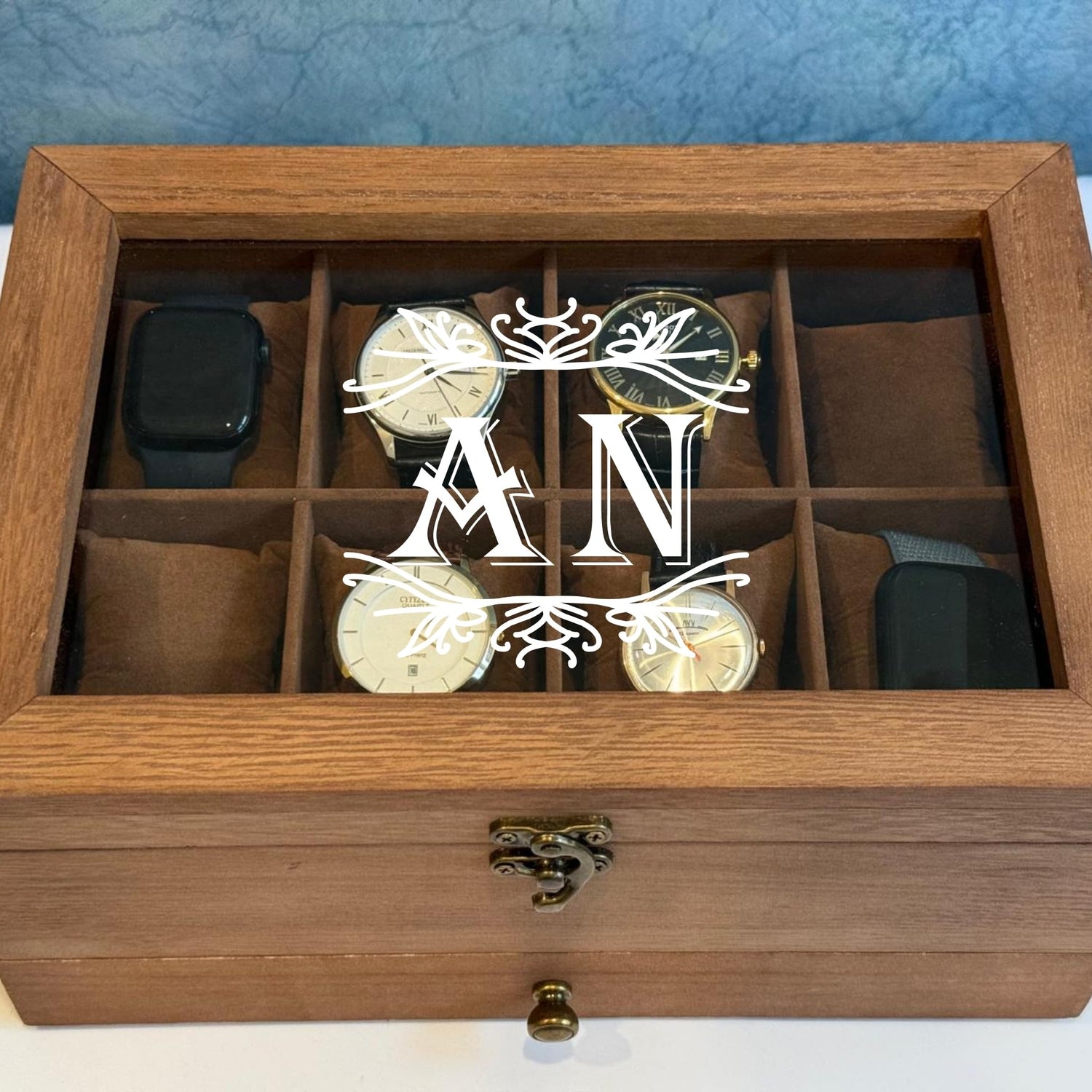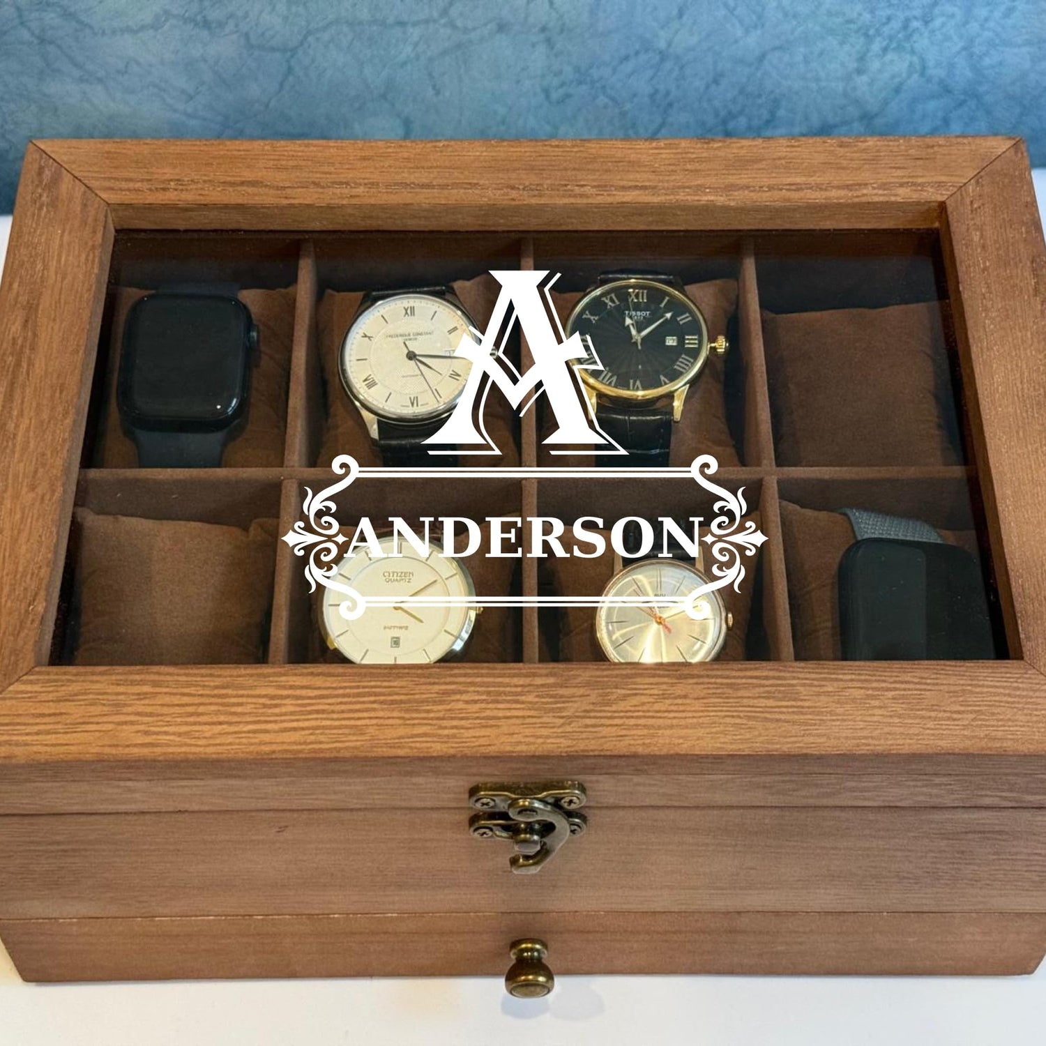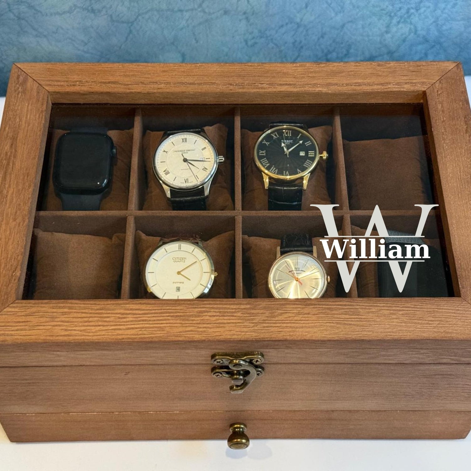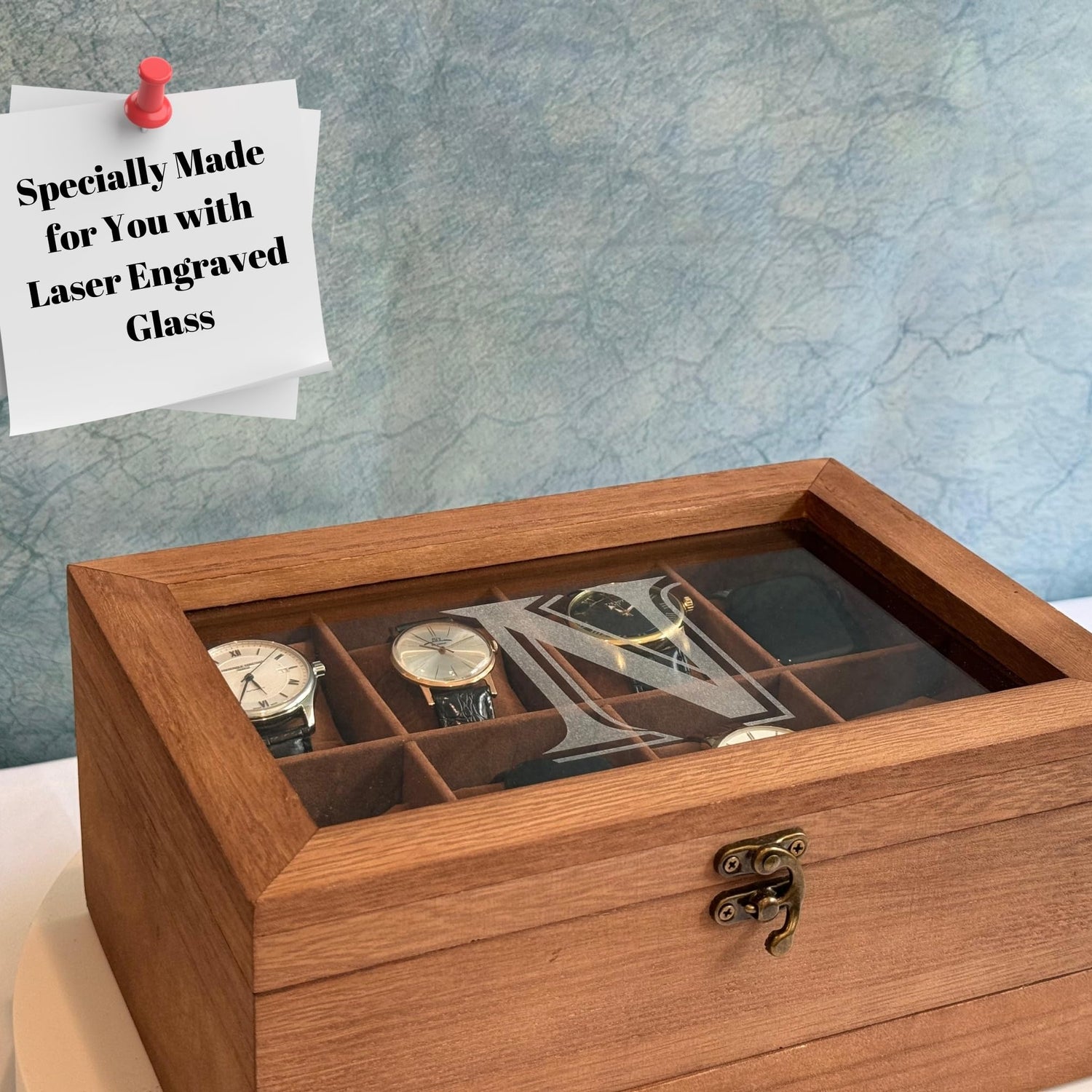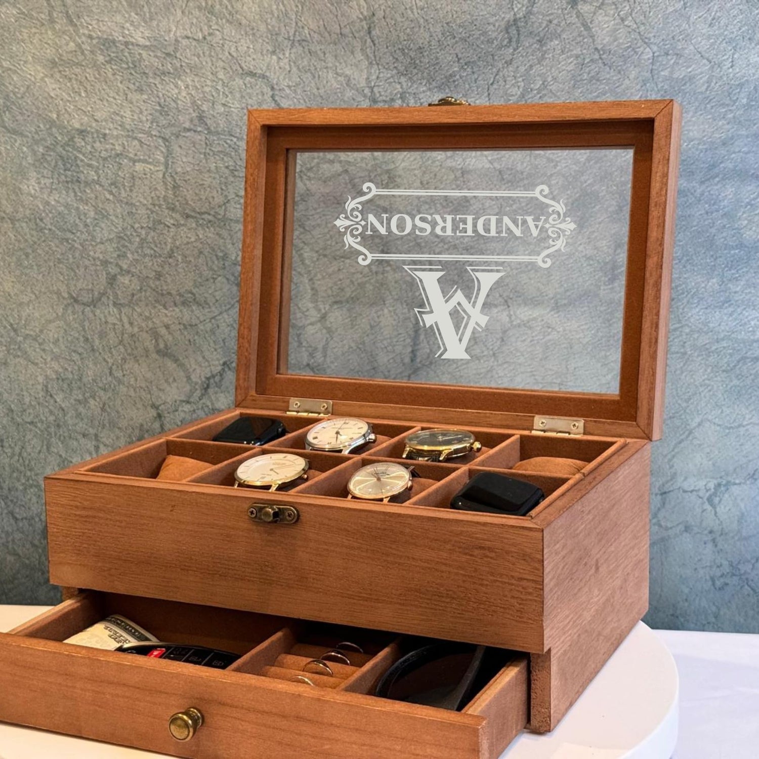 Personalized Watch Storage Box with Drawer, 8 Slots, 2 Layers, Wood - Groomsmen Gifts - Custom Gift for Him, Dad, Husband - Gift for Men to keep sunglasses, key, rings (Watch Box)