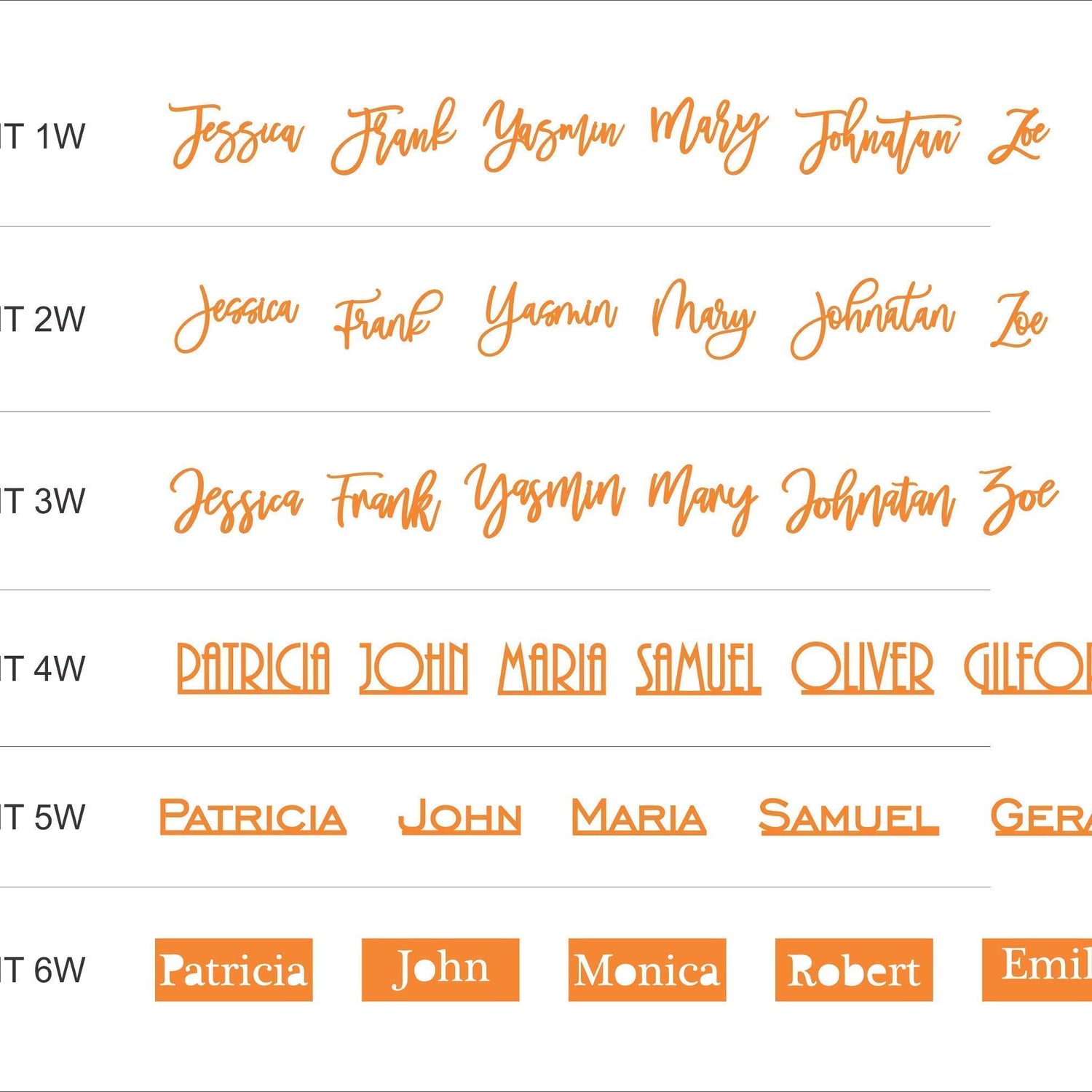 - Each name with vary in length depending on how many letters it has in it, the rough height of capital letter is 4 cm. In any case it is always a perfect size for a dinner plate!