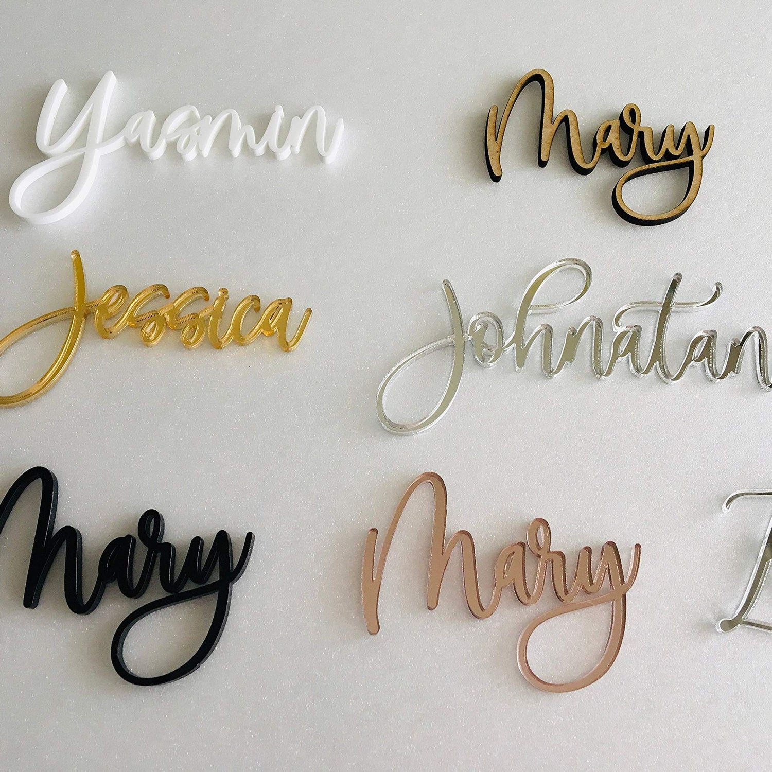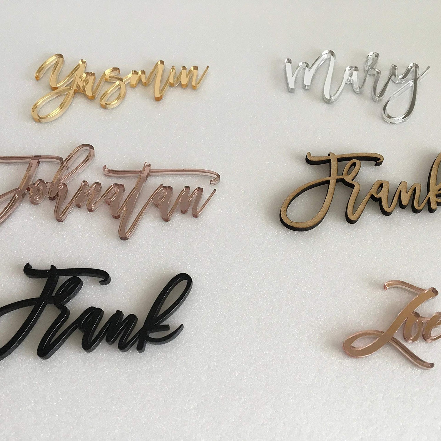 Personalized Wedding Acrylic Place Cards Wooden Laser Cut Names Custom Place Name Settings Guest Names Escort Cards Calligraphy Names Modern New Font Customized Name Plaque Business Card Holders