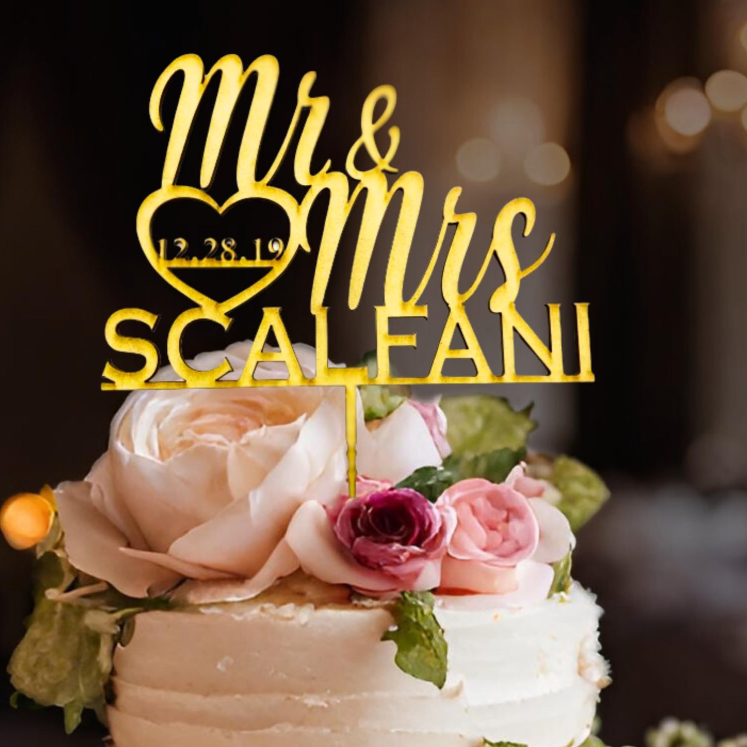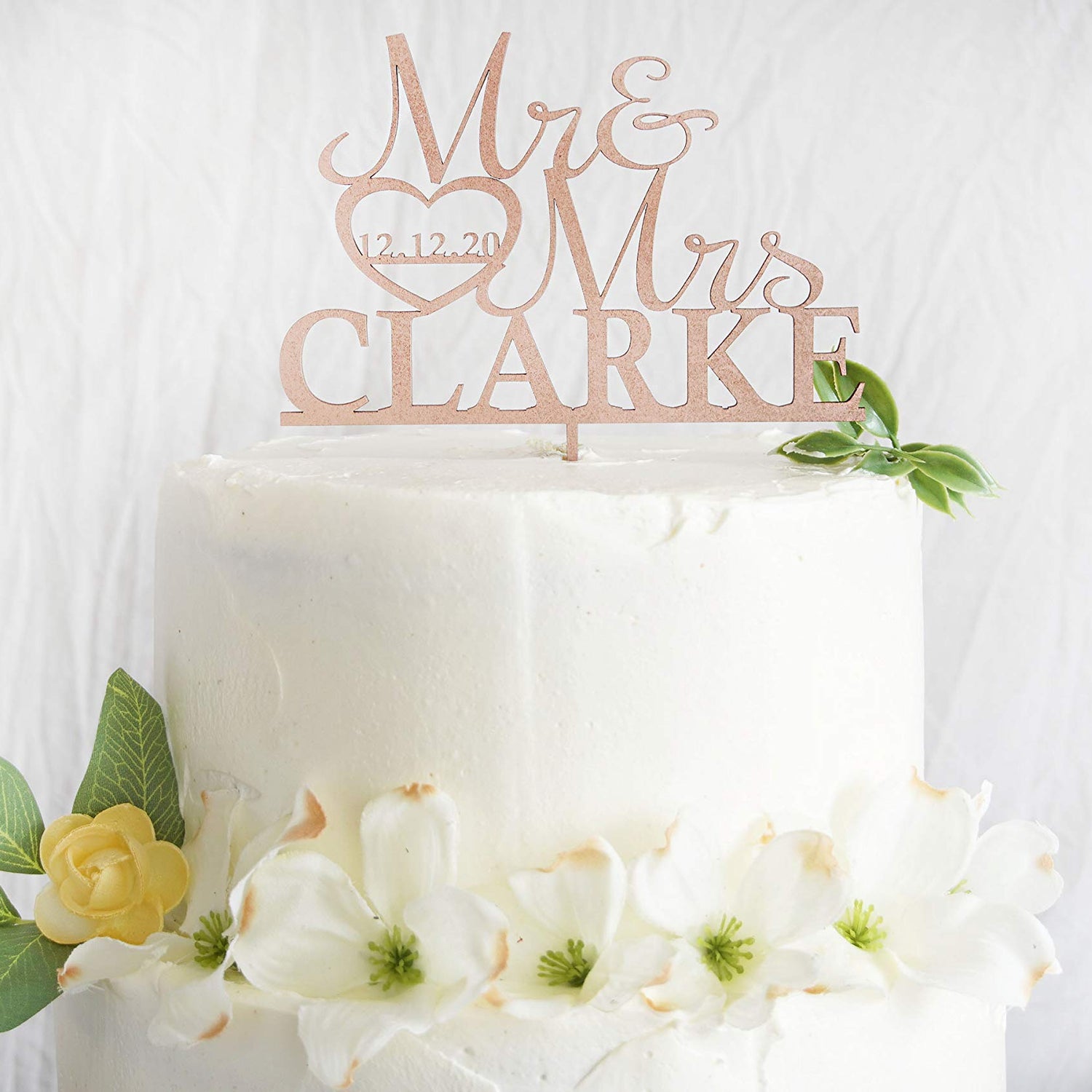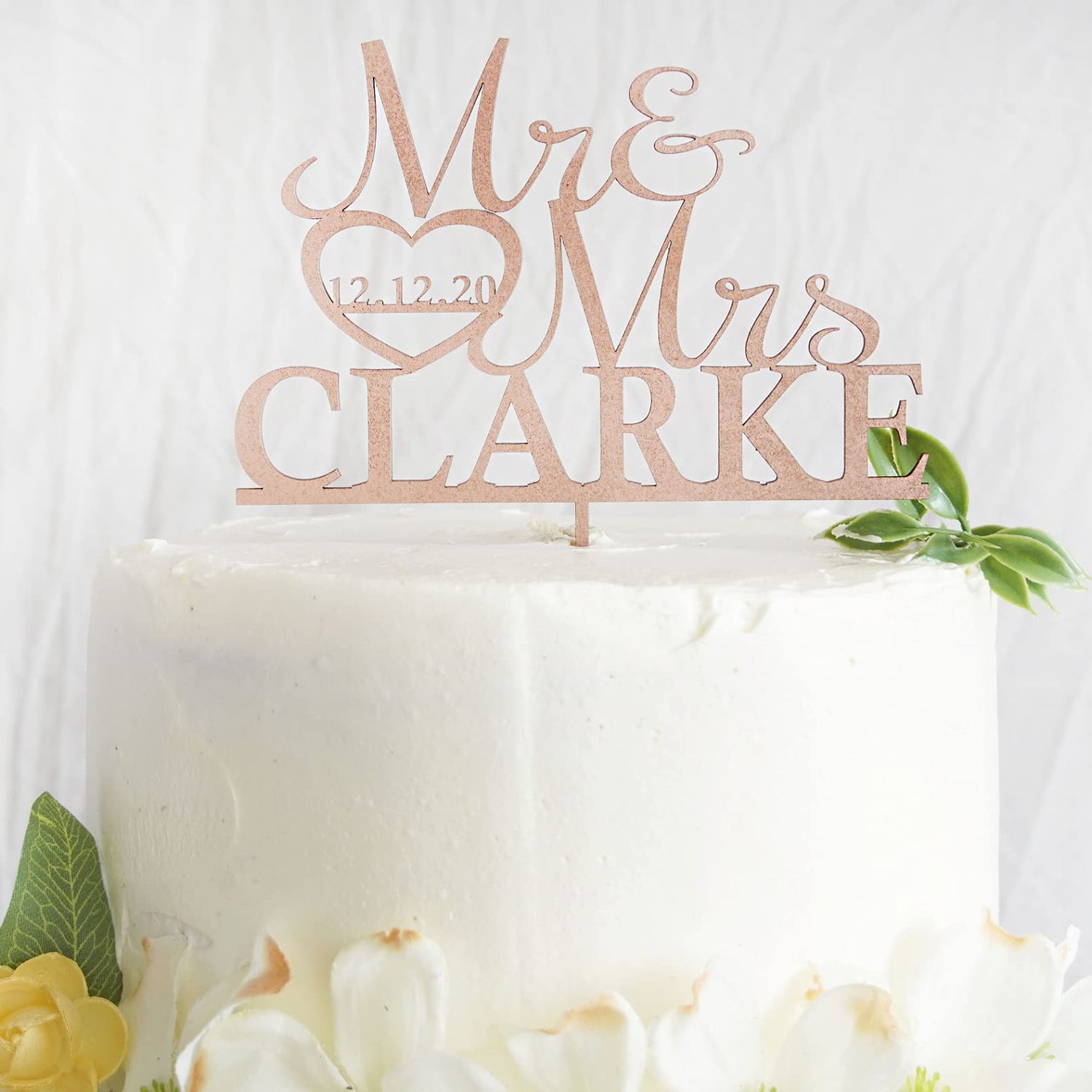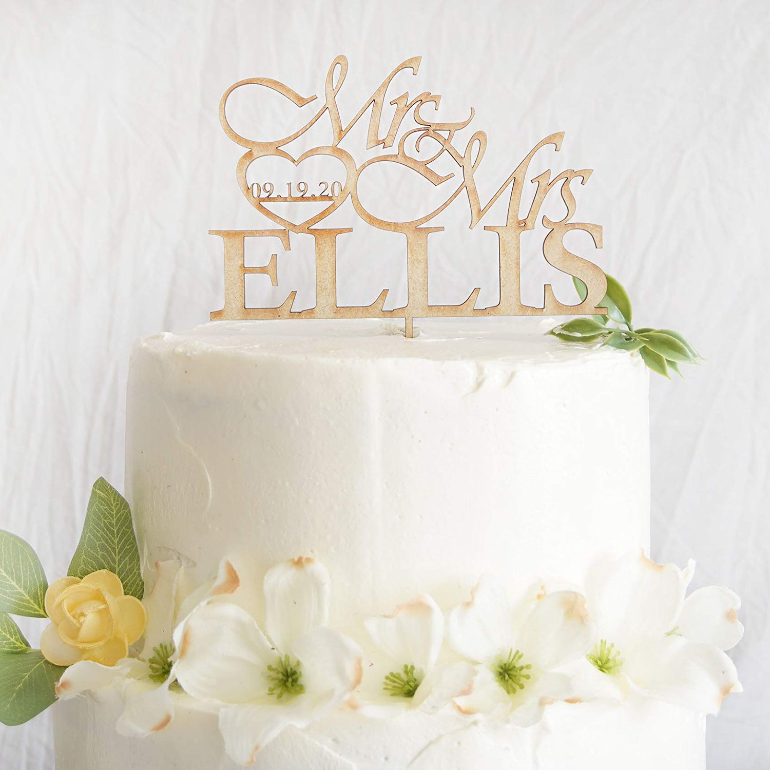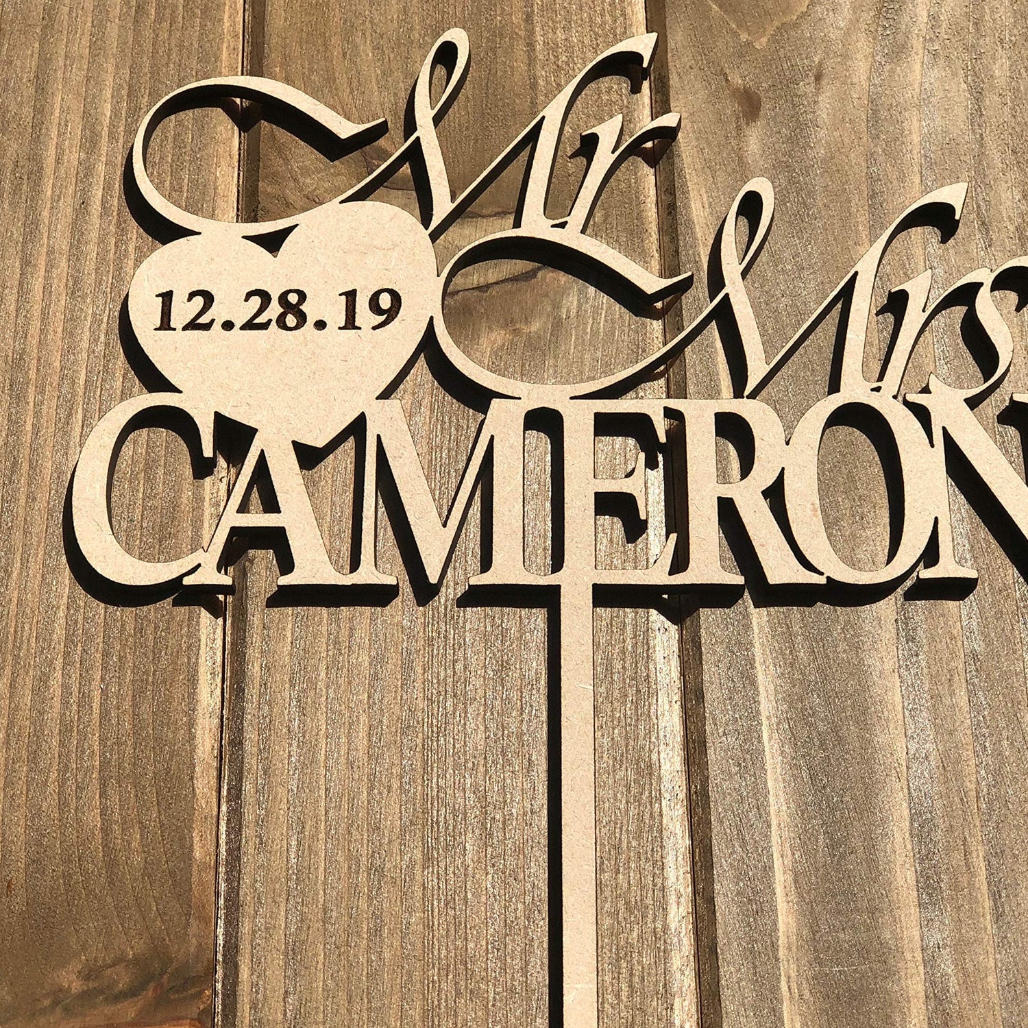 Personalized Wedding Cake Topper | Wooden Cake Topper | Mr Mrs Heart Customized Wedding Date And Last Name