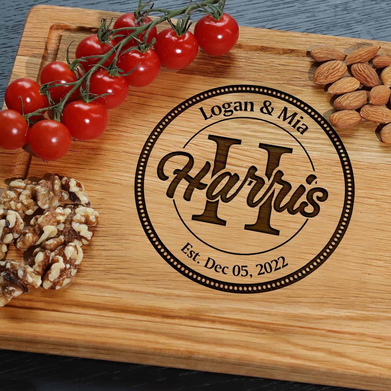 Personalized Wooden Cutting Board, Best Anniversary Gift for Couple, Personalized Name Gift for House warming, Wedding, Newly Married, Engagement,