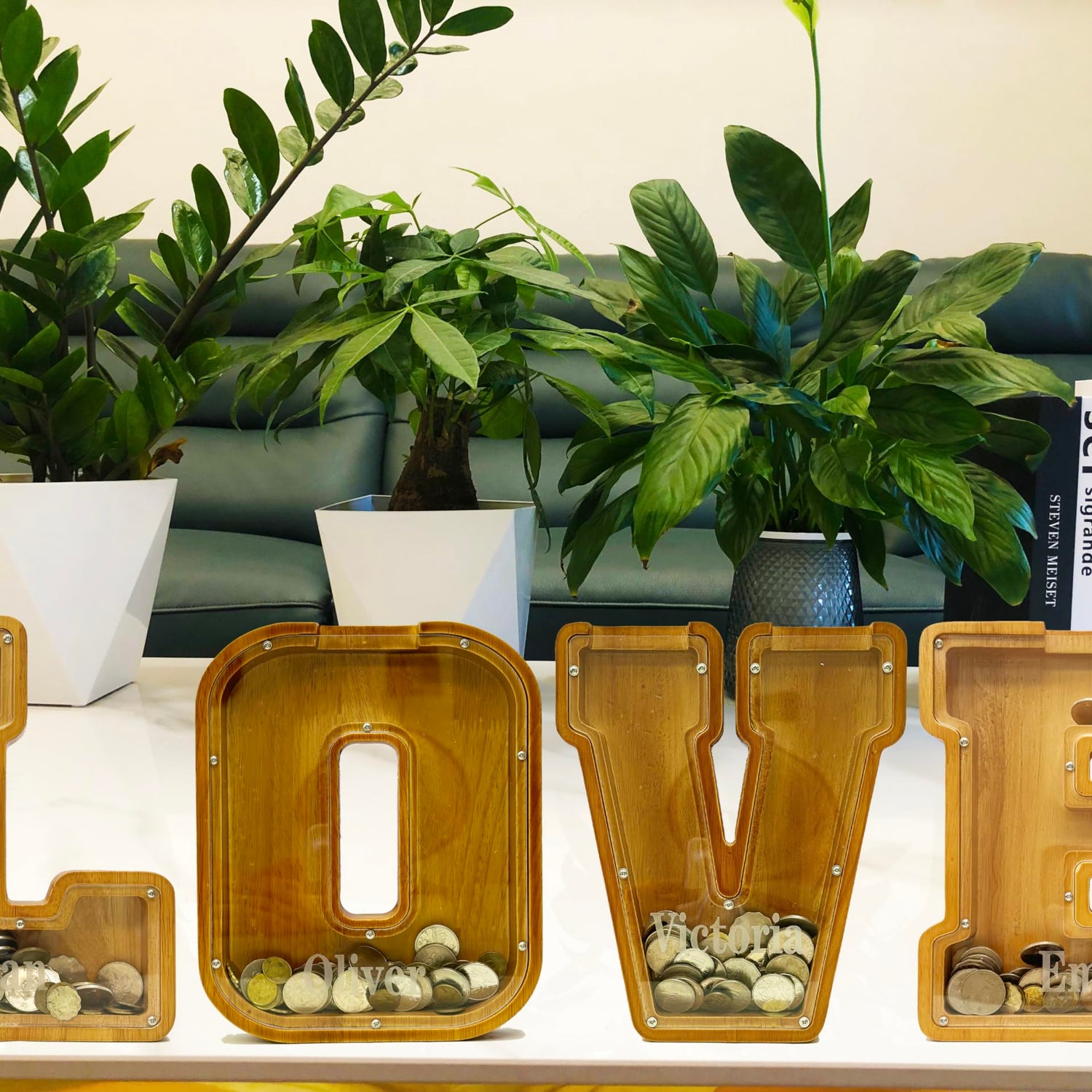 - ✔【SAFE AND PRACTICAL】: A-Z LETTER BANK is crafted from 100% wood, natural and durable, Personalized name service made it unique as present when baby new born and holidays like birthday,back to school,thanksgiving,christmas and new years. Great house warming gift for adults as decorative oranments. packed with LOVE HOME SWEET HOME.