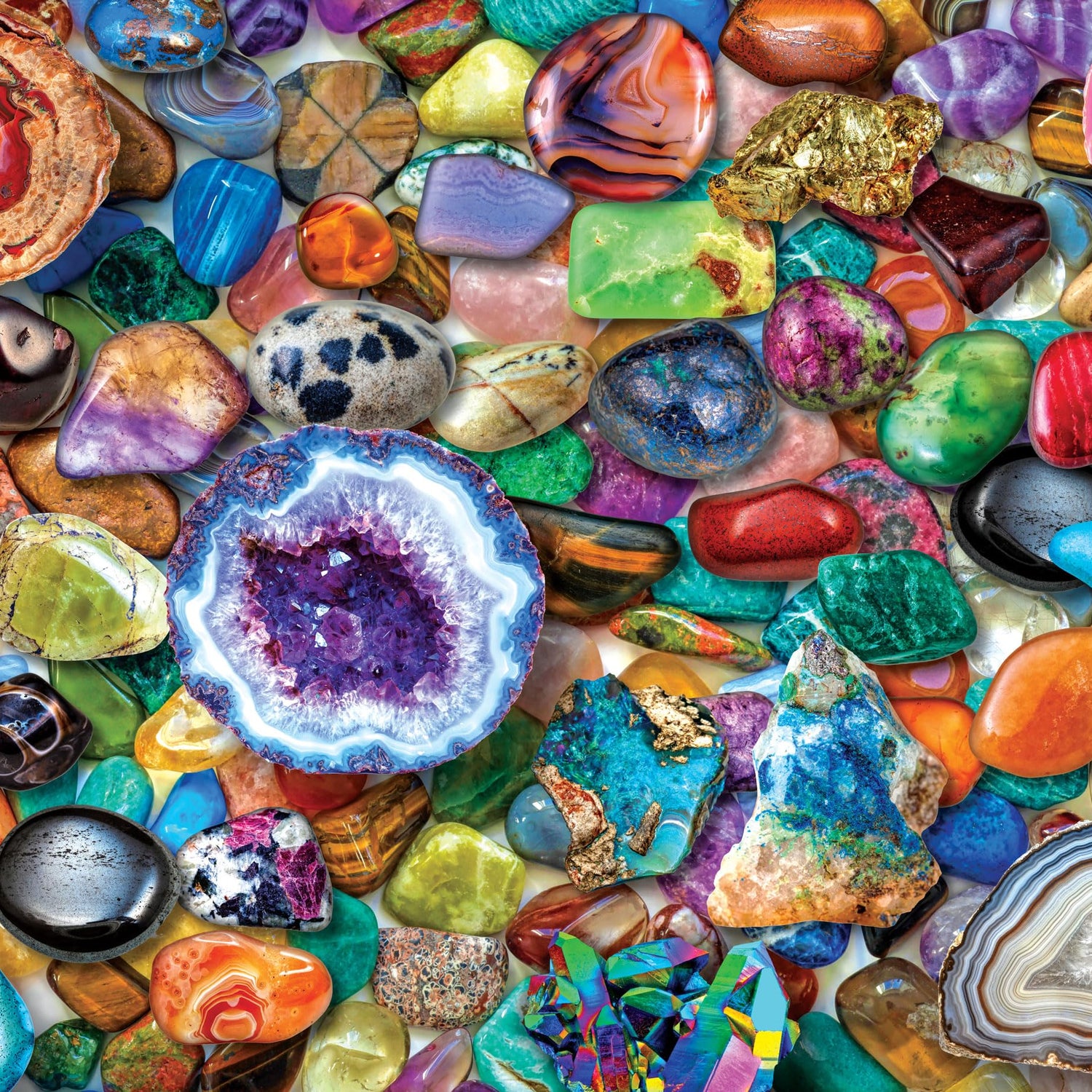 Details: A mother lode of gemstones, geodes, and polished stones makes up this vibrant jigsaw puzzle.