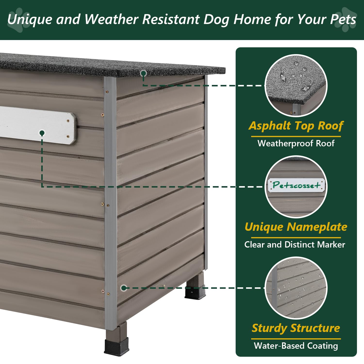 - 【Unique Nameplate 】Over size 43.3"W x 33.5"H x31"D,our dog house for outdoor comes equipped with a distinctive nameplate,clear and distinct marker for the doghouse,creating a unique and individualized space for your pet.This dog house as a gift to your furry buddies,they will feel your love.