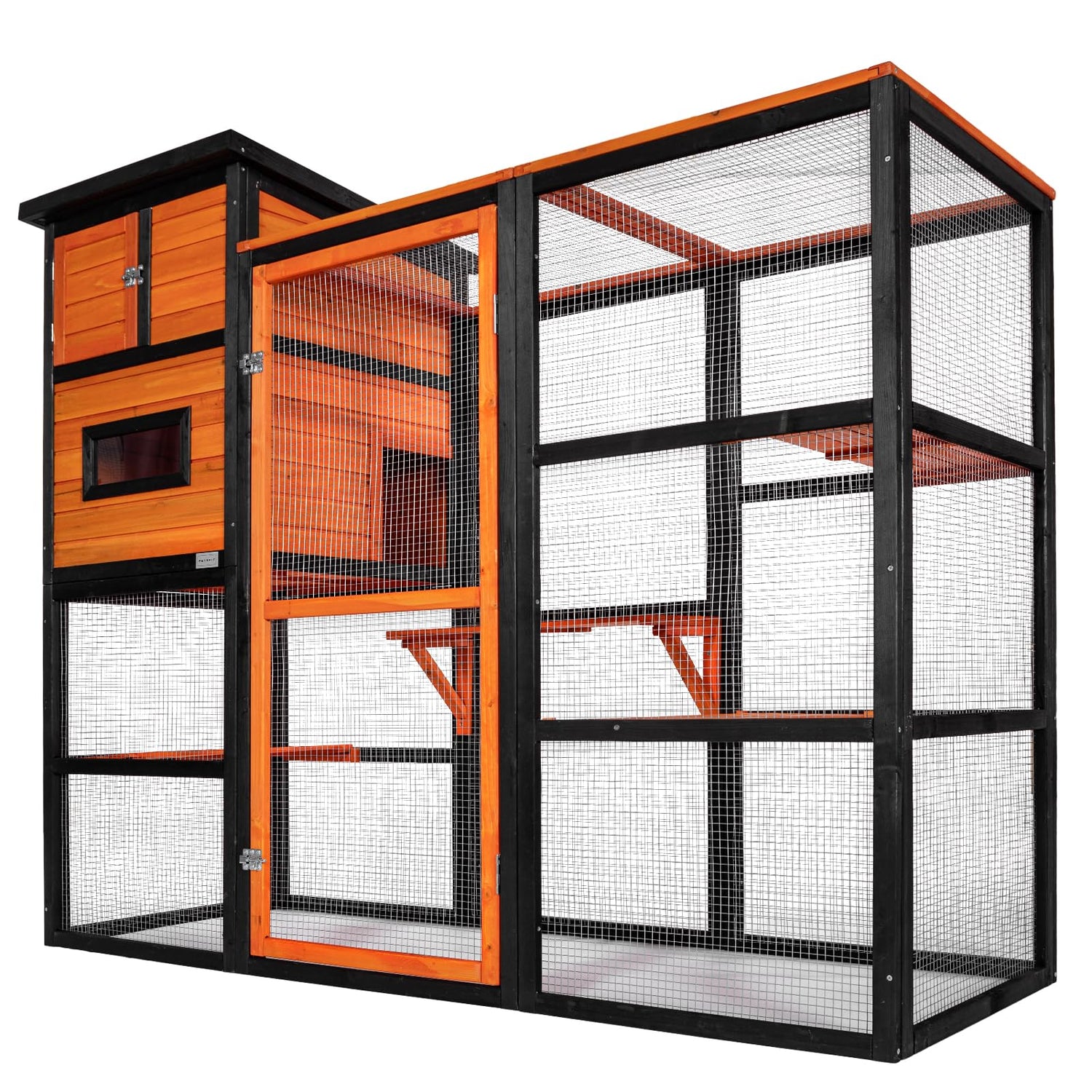 - Discover the ultimate outdoor cat catio - an outdoor haven with 2 cozy rooms, and 4 platforms in a spacious area. It's the perfect retreat for cats and other friendly creatures, providing a secure space to enjoy nature in a designated catio.
