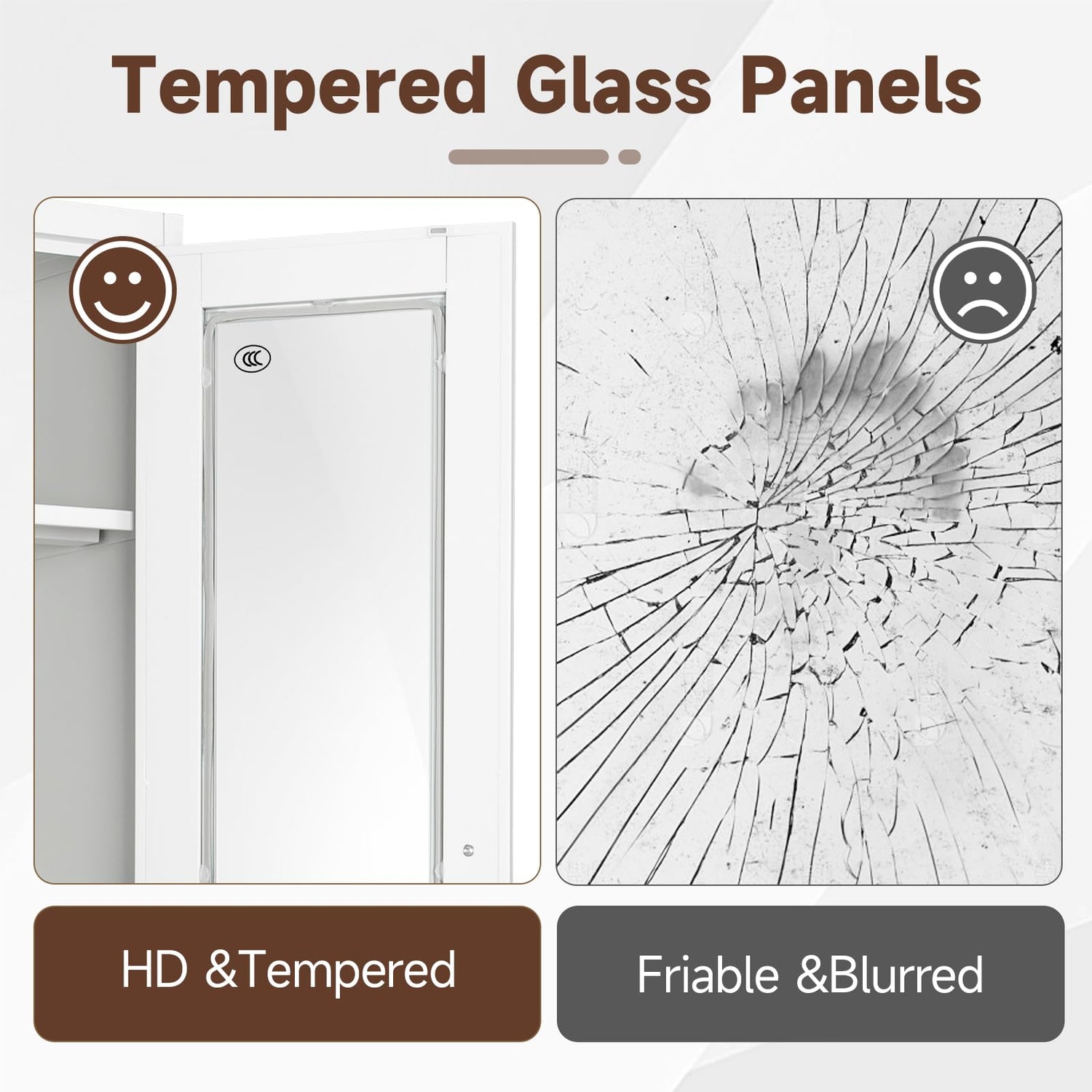 - Upgrade Tempered Glass Door- Tall glass cabinet equiped 2 galss doors. The 2 doors of this curio cabinets with high-definition tempered glass, so that the items inside are clear at a glance, easier and fast for you to find collectibles, trophies, handcrafts,et.