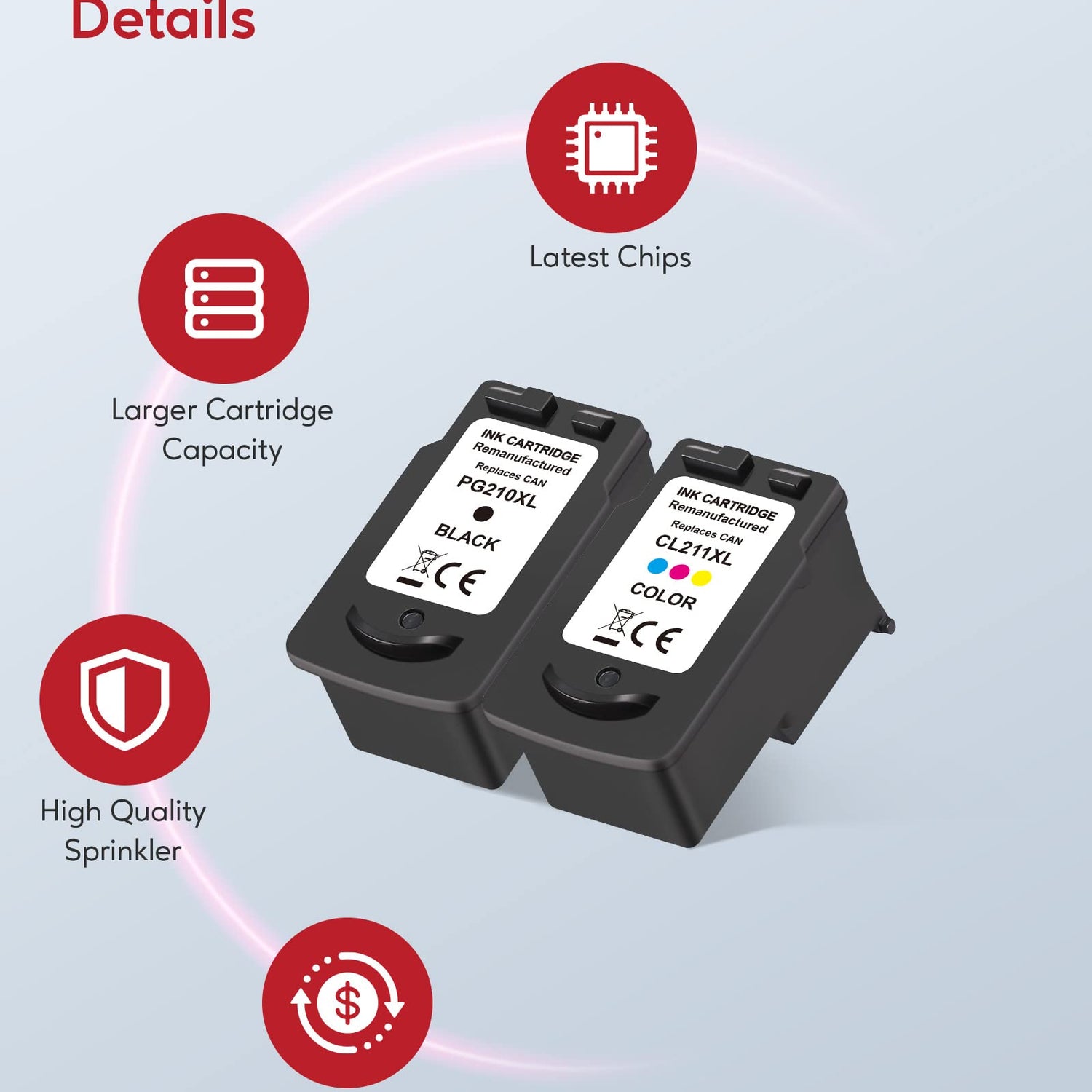 - 🎁Packing List: 1x PG-210xl black ink cartridge, 1x CL-211xl color ink cartridge (2 pack), 1x user manual.