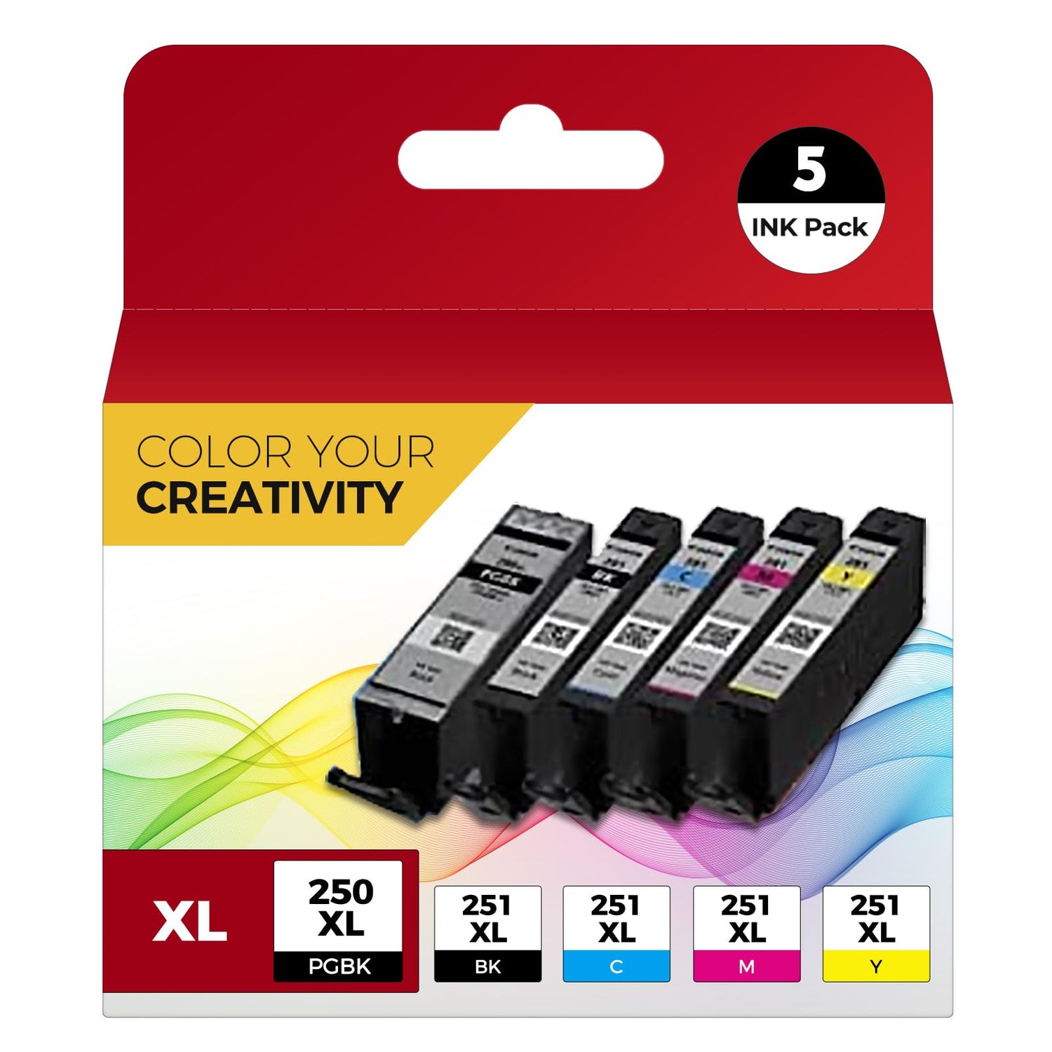 - Package Contents: 5 packs of compatible ink cartridge replacements includ: 1 x 250XL PGBK, 1 x 251XL Black, 1 x 251XL Cyan, 1 x 251XL Magenta, 1 x 251XL Yellow, 1 x User Guide.