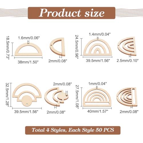PH PandaHall 200PCS Unfinished Wood Blanks Charms 4 Style DIY Rainbow Earrings Pendants Wood Earring Findings for Earring Necklace Jewelry DIY Craft