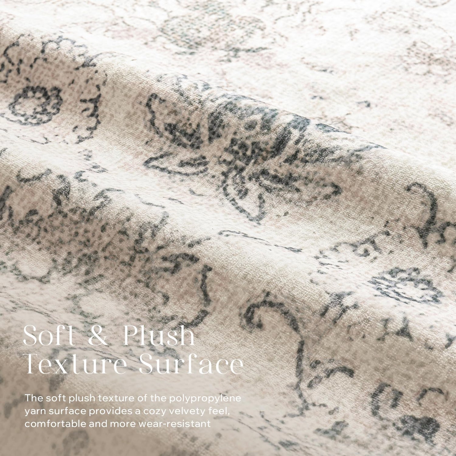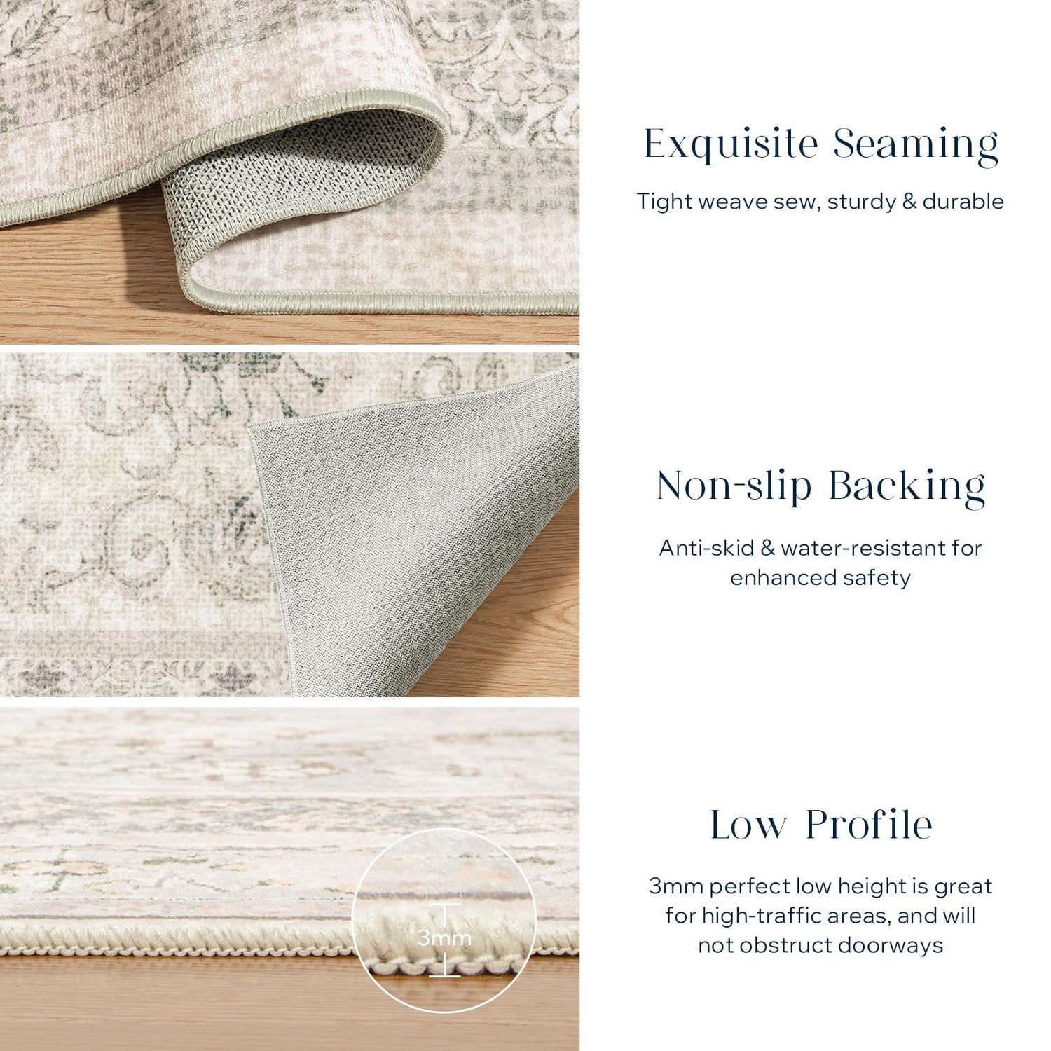 Phantoscope Hallway Runner Rug 2'x10'- Long Rug Runner Boho Washable Non-Slip Carpet for Kitchen Entryway Laundry Bedroom, Ultra-Thin Runners Vintage Distressed Accent Rug, Beige/Neutral